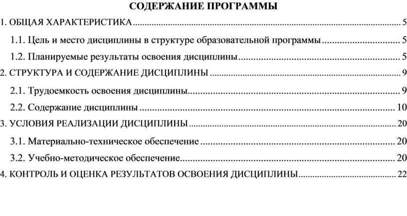 1. Общая характеристика РАБОЧЕЙ ПРОГРАММЫ УЧЕБНОЙ ДИСЦИПЛИНЫ