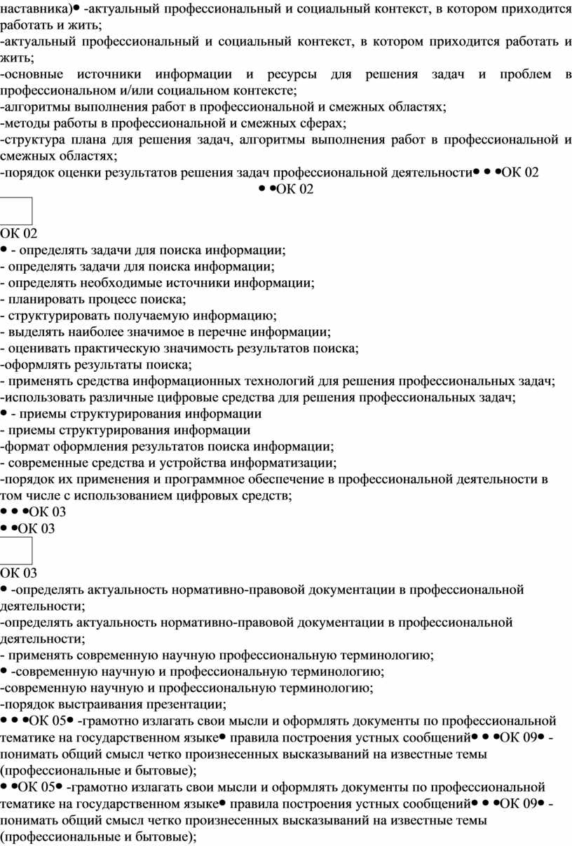 ОК 01 ОК 02 ОК 03 ОК 05 ОК 09