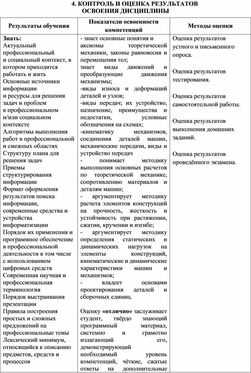 4. КОНТРОЛЬ И ОЦЕНКА РЕЗУЛЬТАТОВ ОСВОЕНИЯ ДИСЦИПЛИНЫ