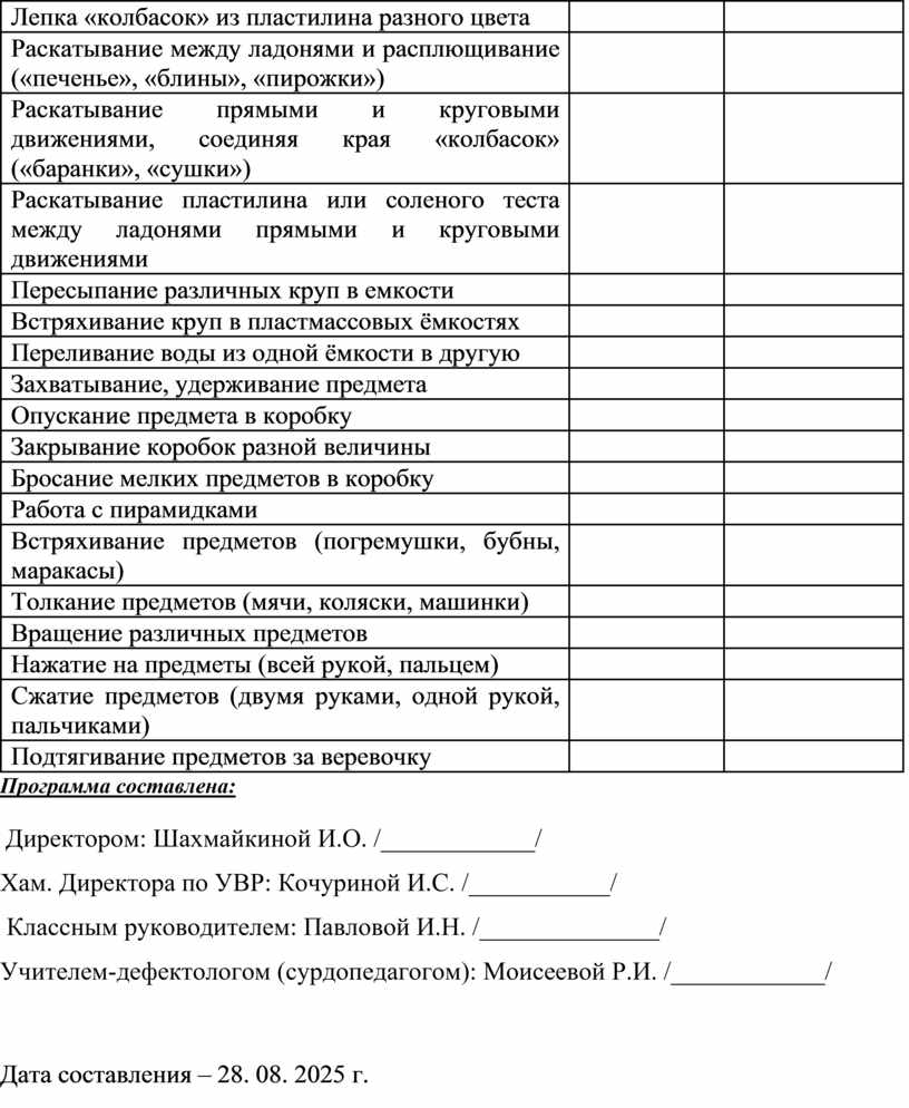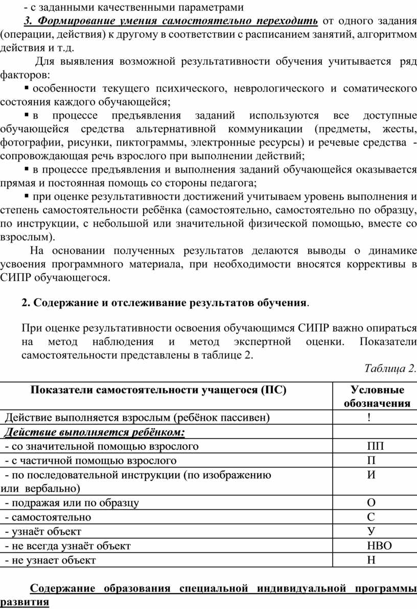 Учитель оценивает уровень сформированности представлений, действий, операций, внесенных в СИПР, динамику обучения по следующим критериям (1 раз в полугодие, т.е. 2 раза в год):