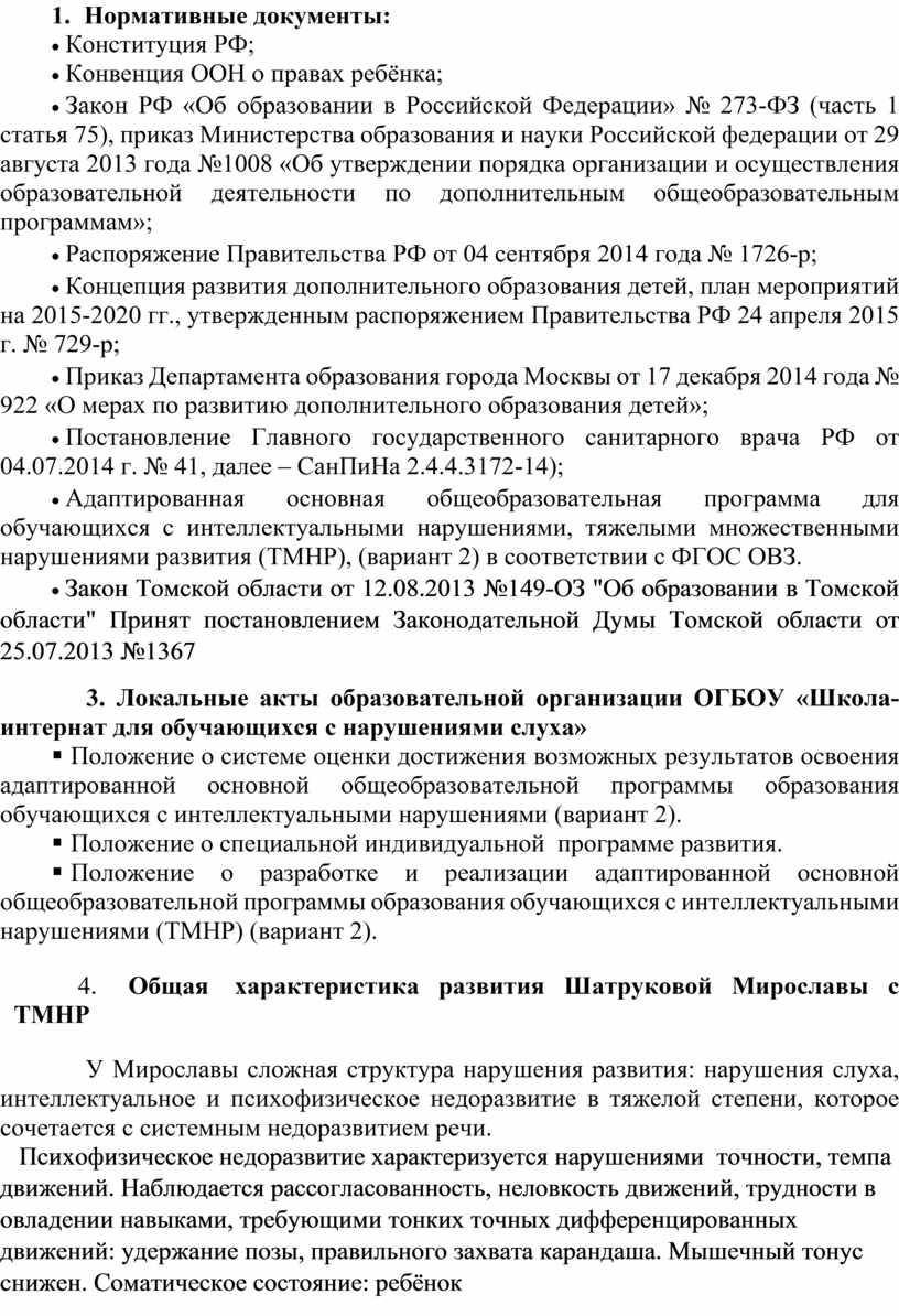 · Закон РФ «Об образовании в Российской Федерации» № 273-ФЗ (часть 1 статья 75), приказ Министерства образования и науки Российской федерации от 29 августа 2013 года №1008 «Об утверждении порядка организации и осуществления образовательной деятельности по дополнительным общеобразовательным программам»;