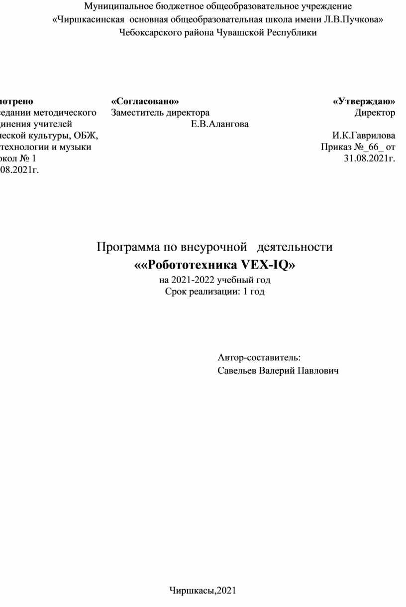 «Утверждаю» Директор И.К.Гаврилова Приказ №_66_ от 31.08.2021г.