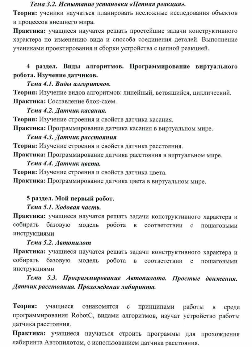 Раздел II. Виды алгоритмов. Программирование виртуального робота. Изучение датчиков. |