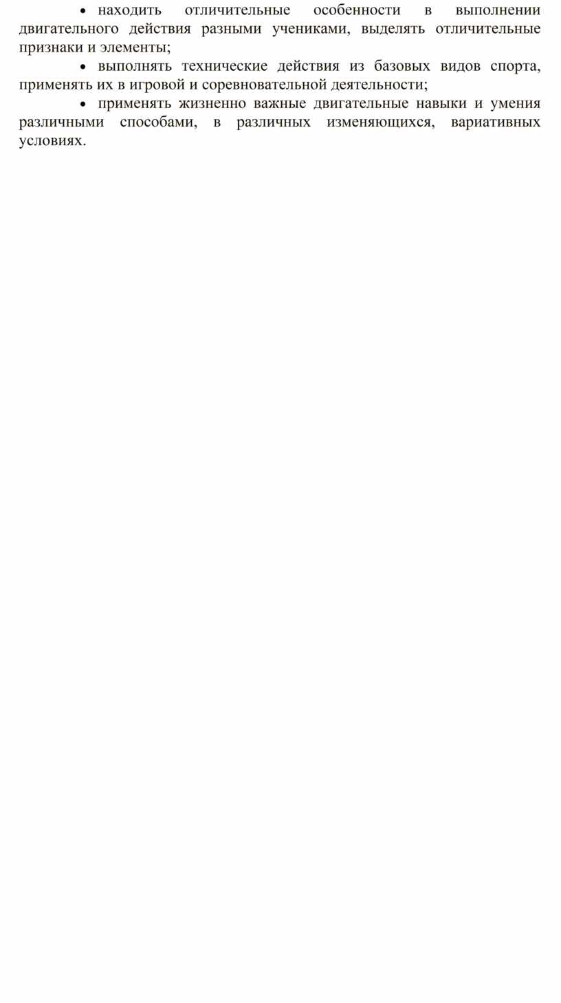 · находить отличительные особенности в выполнении двигательного действия разными учениками, выделять отличительные признаки и элементы;