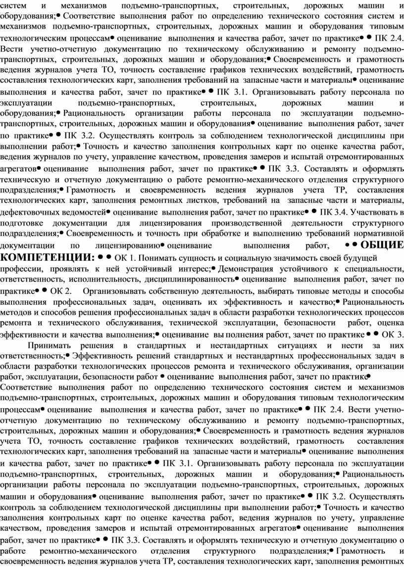ПК 2.4. Вести учетно-отчетную документацию по техническому обслуживанию и ремонту подъемно-транспортных, строительных, дорожных машин и оборудования; |