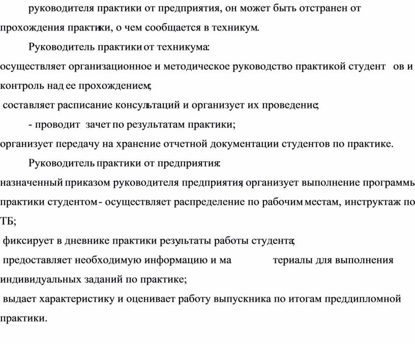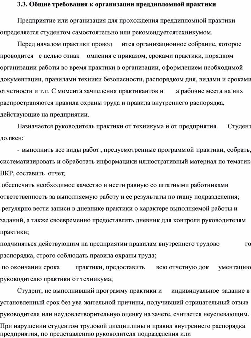Предприятие или организация для прохождения преддипломной практики определяется студентом самостоятельно или рекомендуется техникумом.