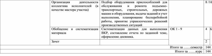 Подбор оборудования приспособлений для обслуживания и ремонта подъемно-транспортных, строительных, дорожных машин и оборудования, выдача заданий и учет выполнения, планирование бесперебойной работы, принятие управленческих решений производственных ситуаций |