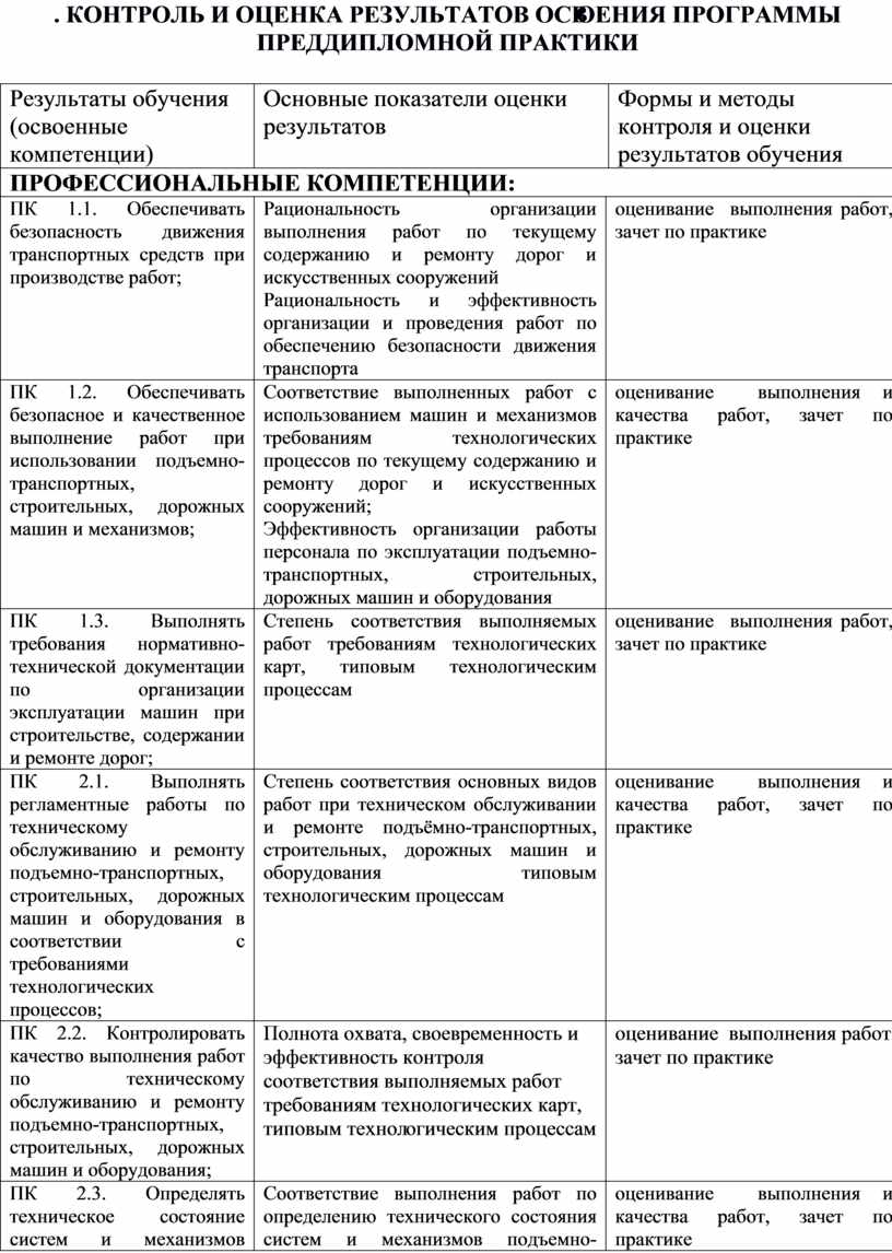 4. КОНТРОЛЬ И ОЦЕНКА РЕЗУЛЬТАТОВ ОСВОЕНИЯ ПРОГРАММЫ ПРЕДДИПЛОМНОЙ ПРАКТИКИ
