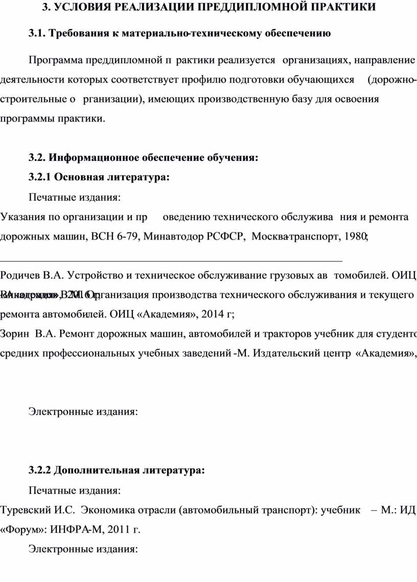 3. УСЛОВИЯ РЕАЛИЗАЦИИ ПРЕДДИПЛОМНОЙ ПРАКТИКИ
