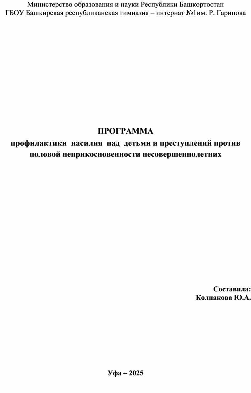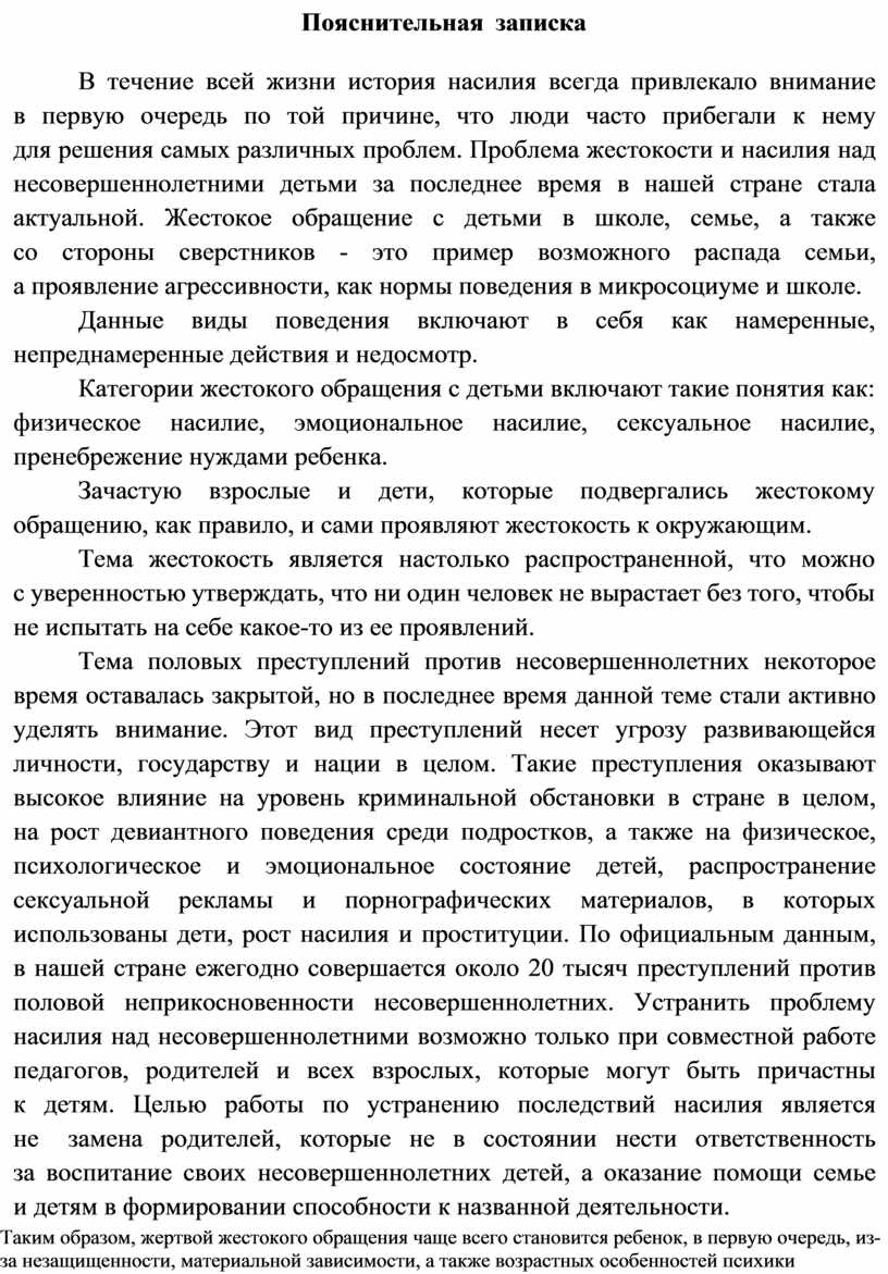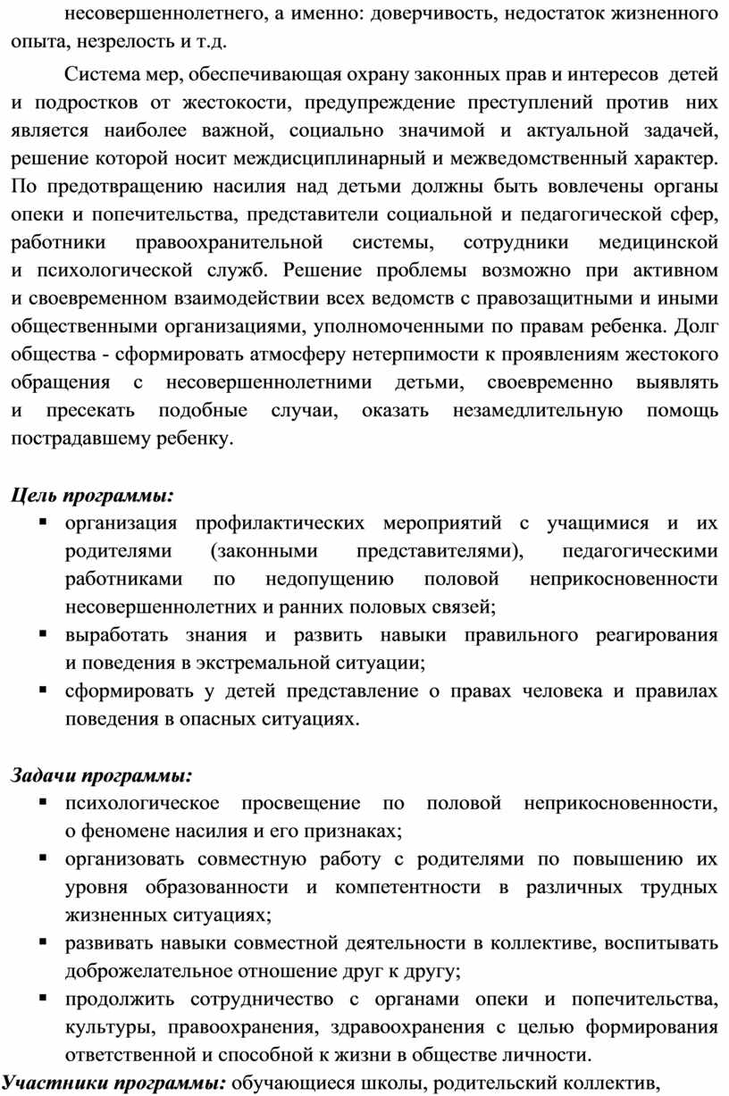 неприкосновенности несовершеннолетних. Устранить проблему насилия над