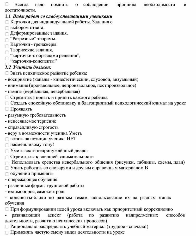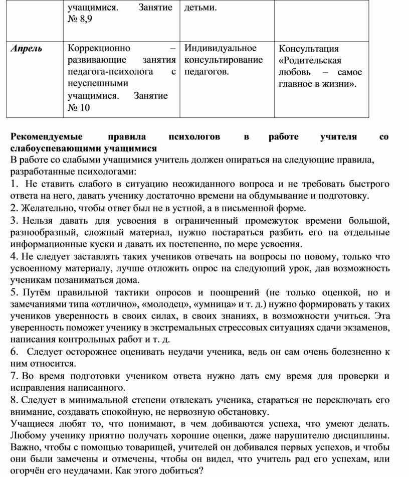 В работе со слабыми учащимися учитель должен опираться на следующие правила, разработанные психологами: