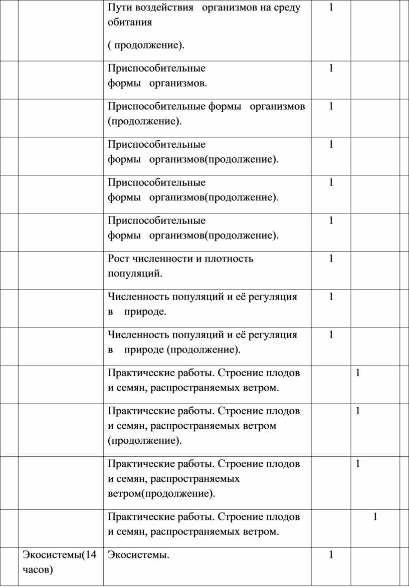 Общие законы зависимости организмов от факторов среды. Основные пути приспособления организмов к среде. Основные среды жизни. Пути воздействия организмов на среду обитания. Приспособительные формы организмов. Сообщества и популяции. Типы взаимодействия организмов. Законы и следствия пищевых отношений. Законы конкурентных отношений в природе. Сообщества и популяции. Демографическая структура популяций. Рост численности и плотность популяций. Численность популяций и её регуляция в природе.