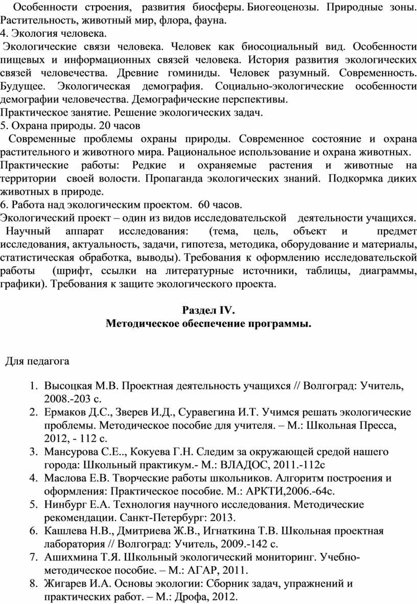 8. Харченко А.Л. Полевая экология. Программа по экологическому образованию. – М.: ИСАР, 2011 г.