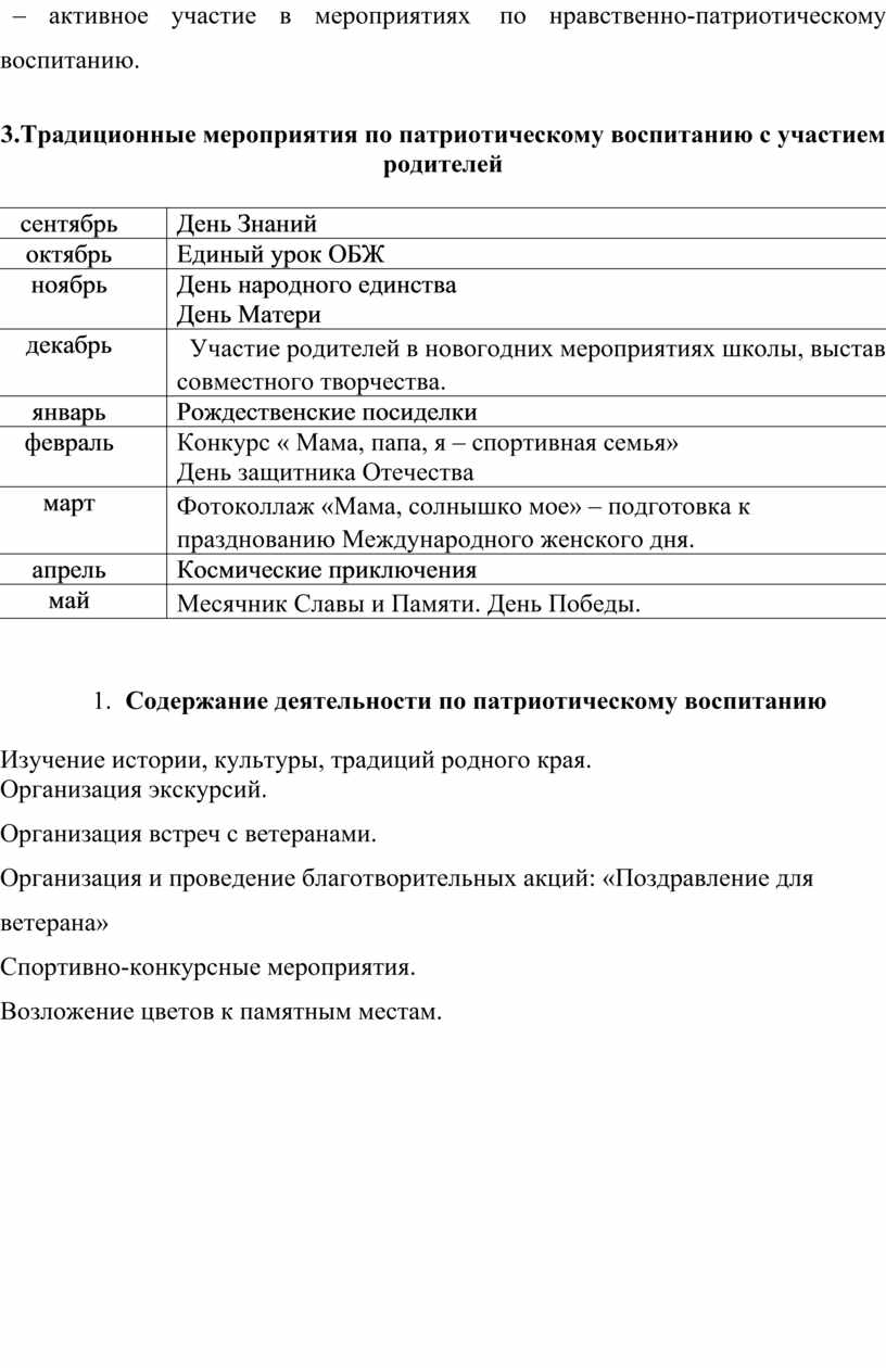 3.Традиционные мероприятия по патриотическому воспитанию с участием родителей