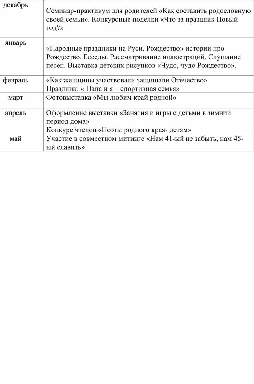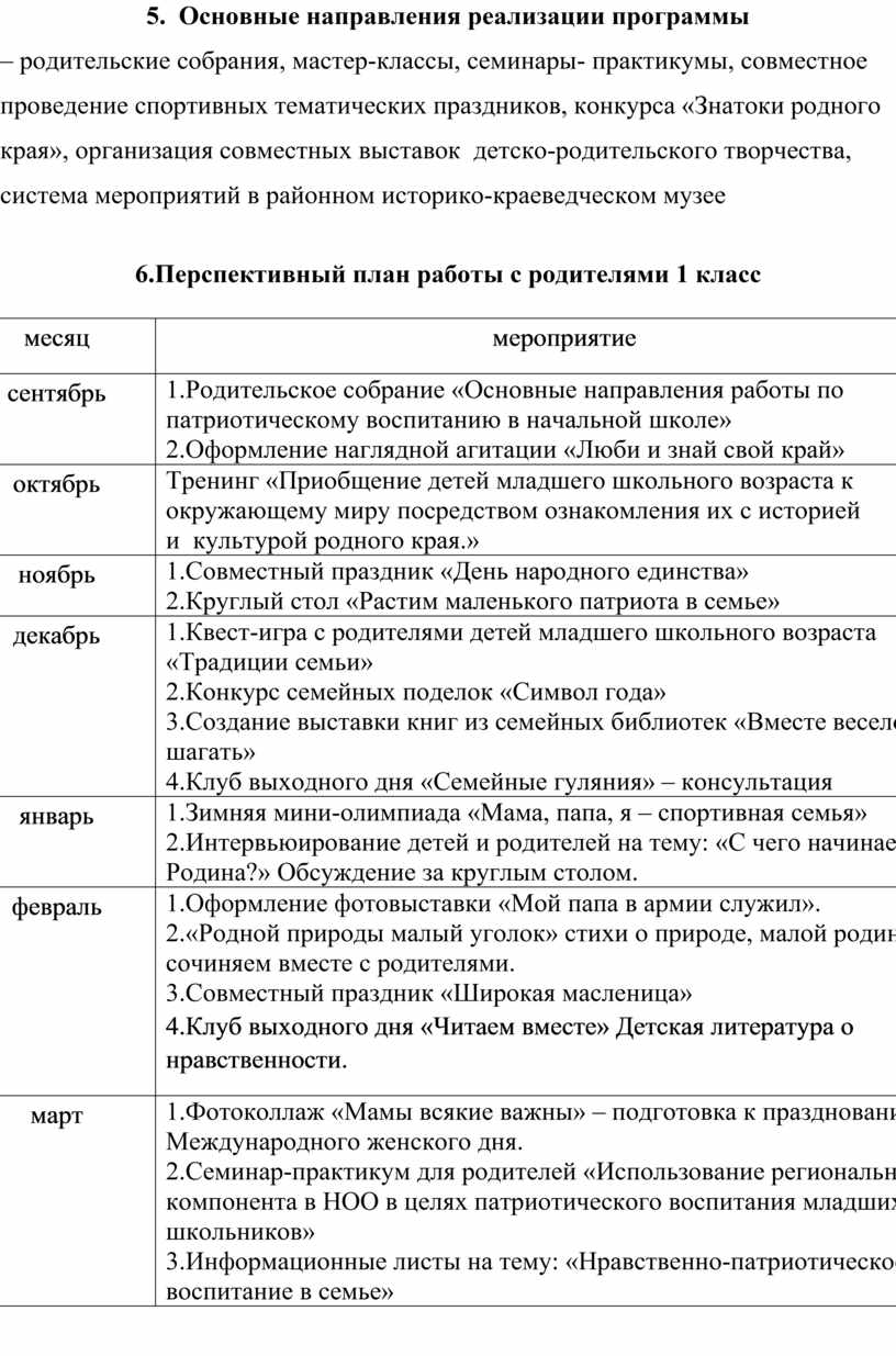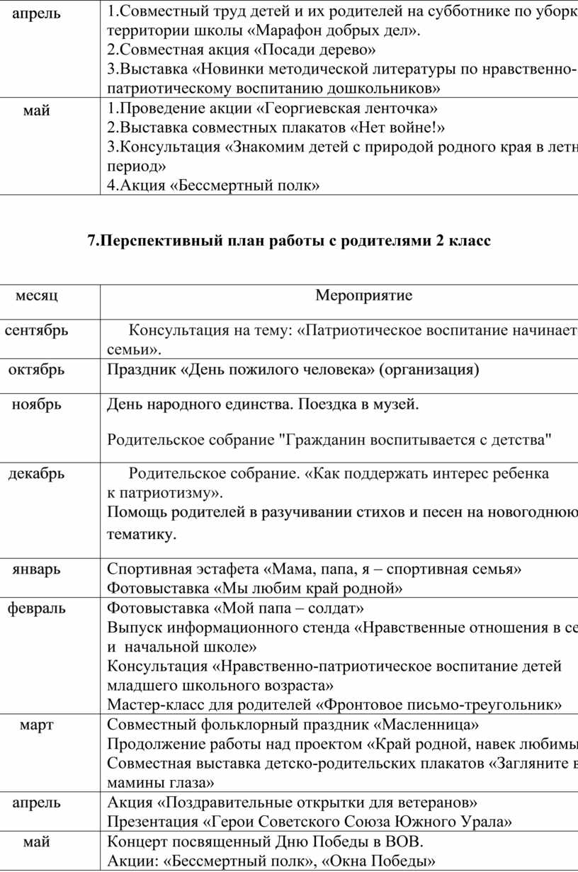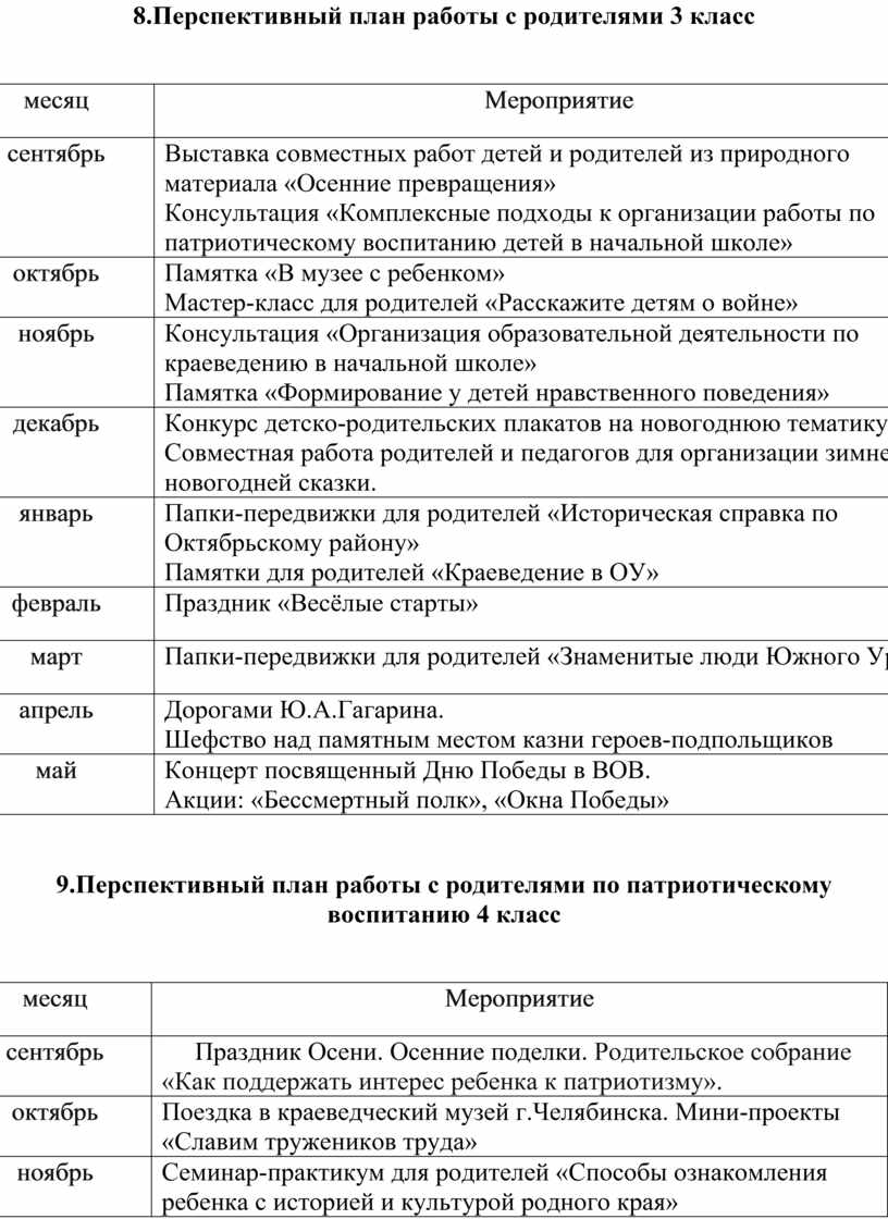 9.Перспективный план работы с родителями по патриотическому воспитанию 4 класс