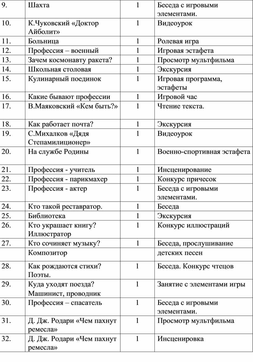 • формирование и развитие представления у детей о широком спектре профессий и их особенностях;