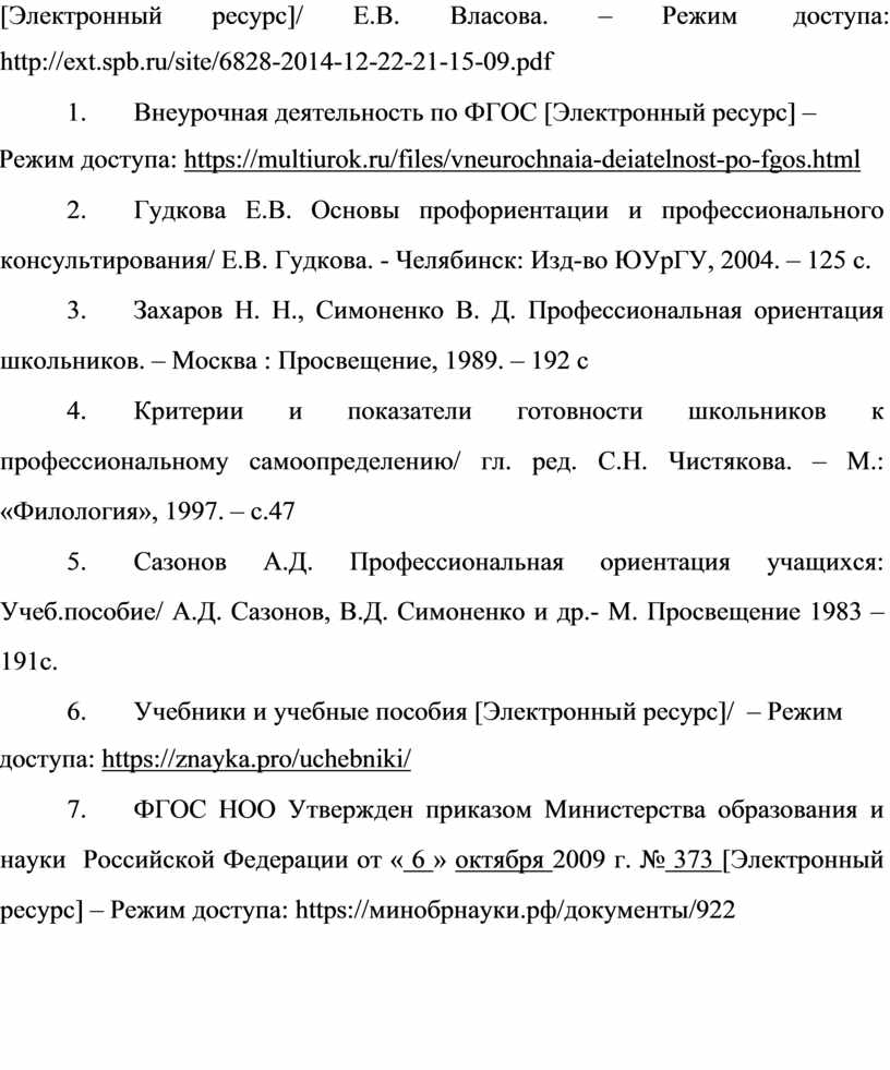 9. ФГОС НОО Утвержден приказом Министерства образования и науки Российской Федерации от « 6 » октября 2009 г. № 373 [Электронный ресурс] – Режим доступа: https://минобрнауки.рф/документы/922