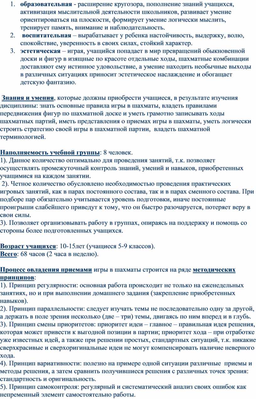 Процесс овладения приемами игры в шахматы строится на ряде методических принципов: