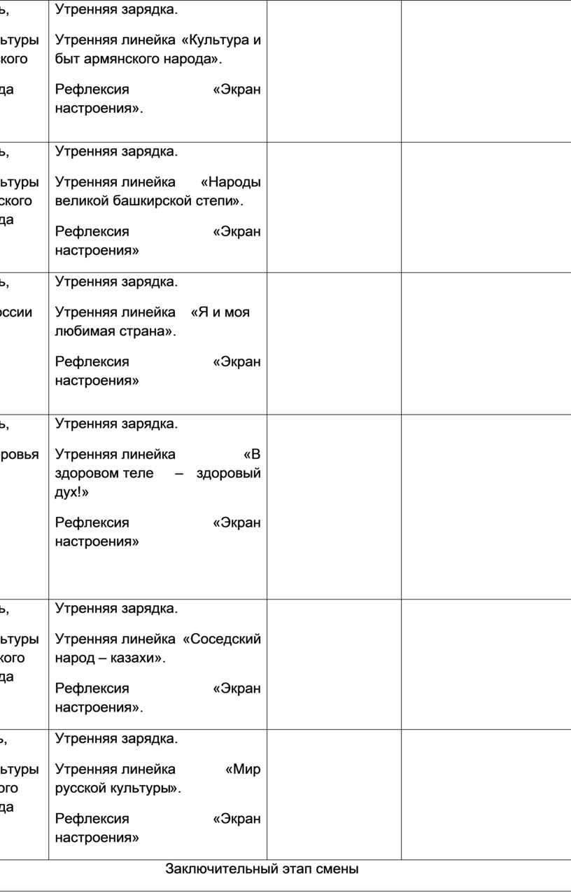 Утренняя зарядка. Утренняя линейка «Народы великой башкирской степи». Рефлексия «Экран настроения» |