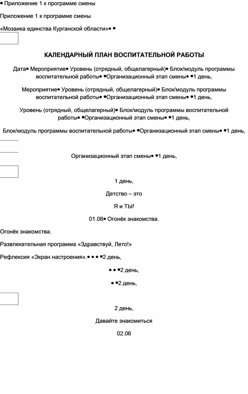 Приложение 1 к программе смены «Мозаика единства Курганской области» |