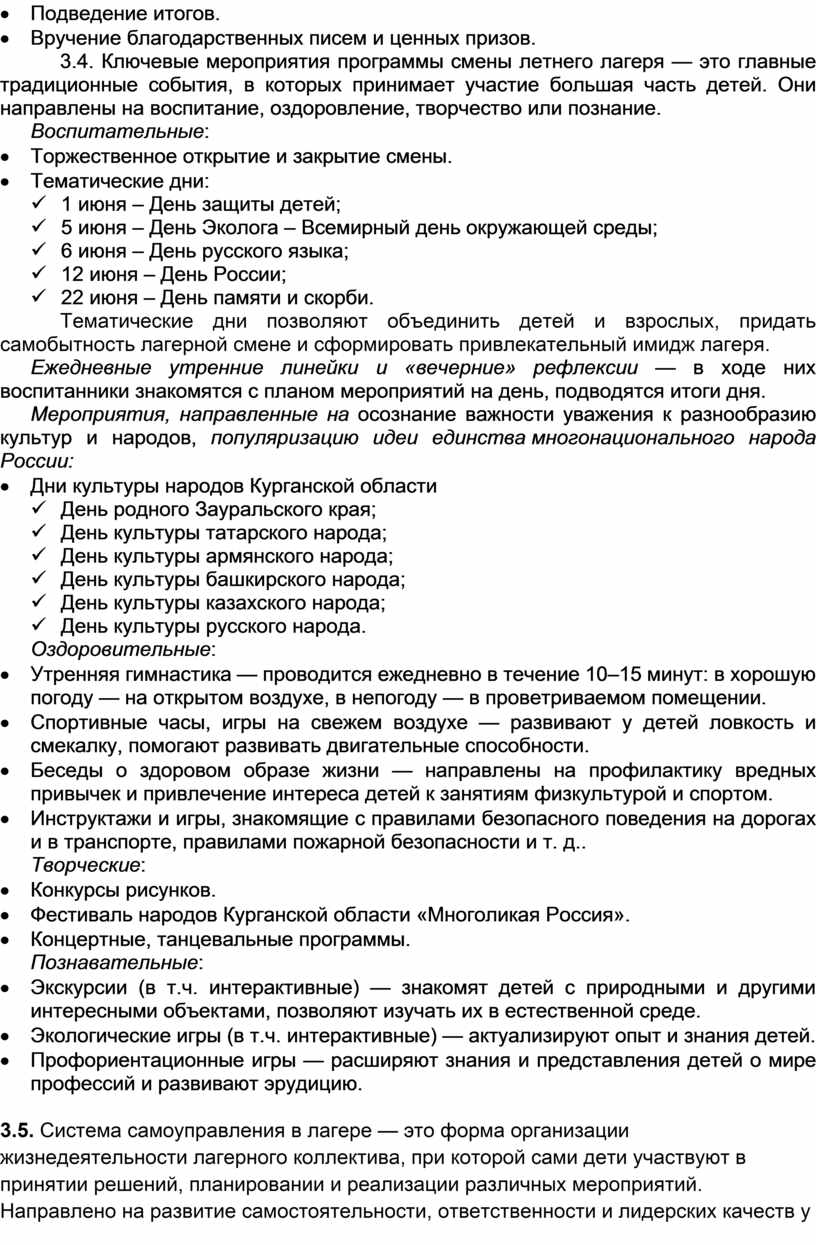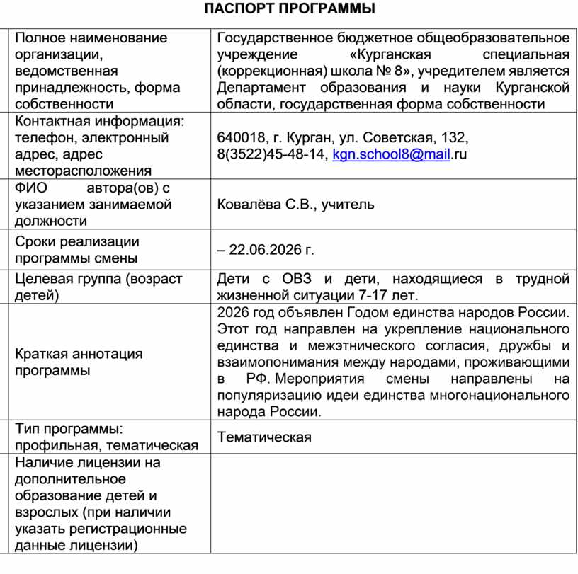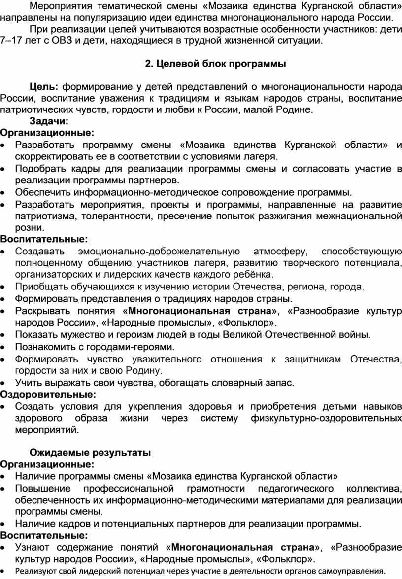 · Наличие программы смены «Мозаика единства Курганской области»