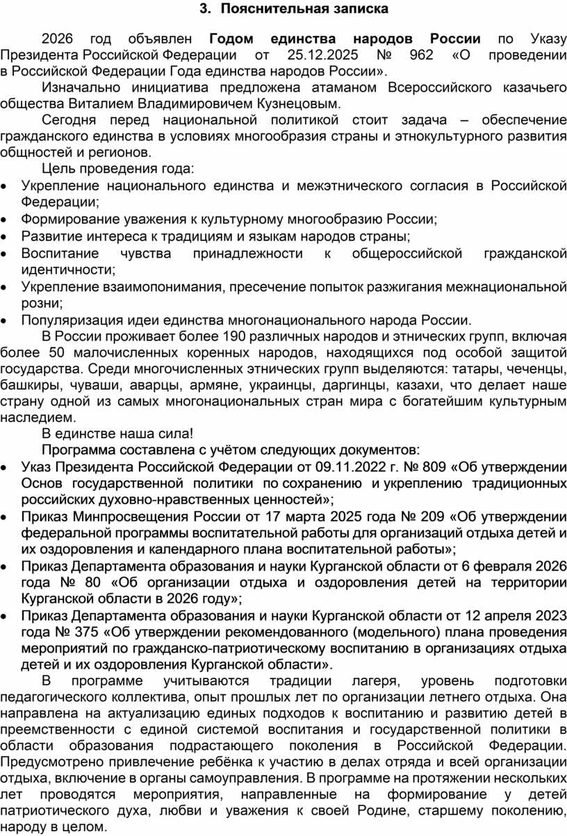 · Приказ Минпросвещения России от 17 марта 2025 года № 209 «Об утверждении федеральной программы воспитательной работы для организаций отдыха детей и их оздоровления и календарного плана воспитательной работы»;