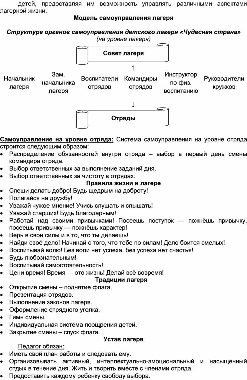 · Руководитель – начальник лагеря