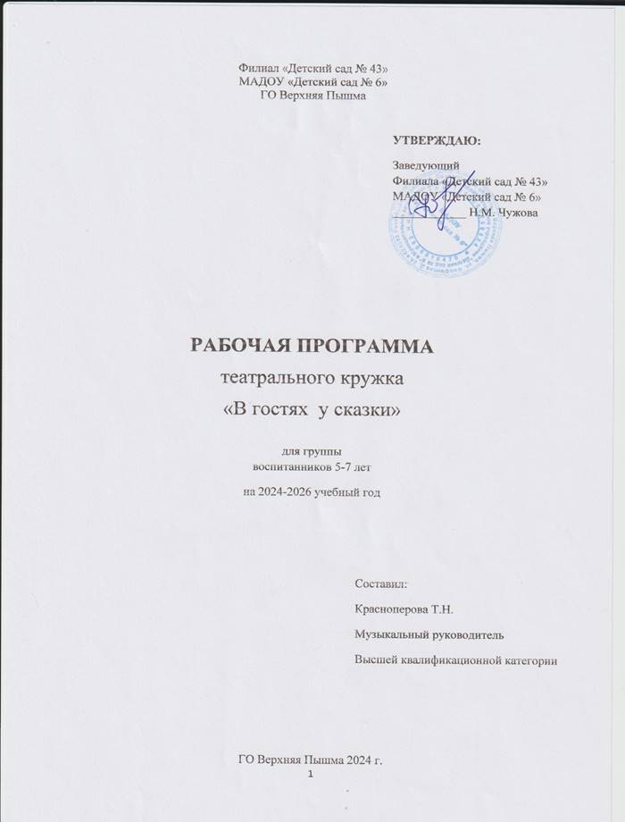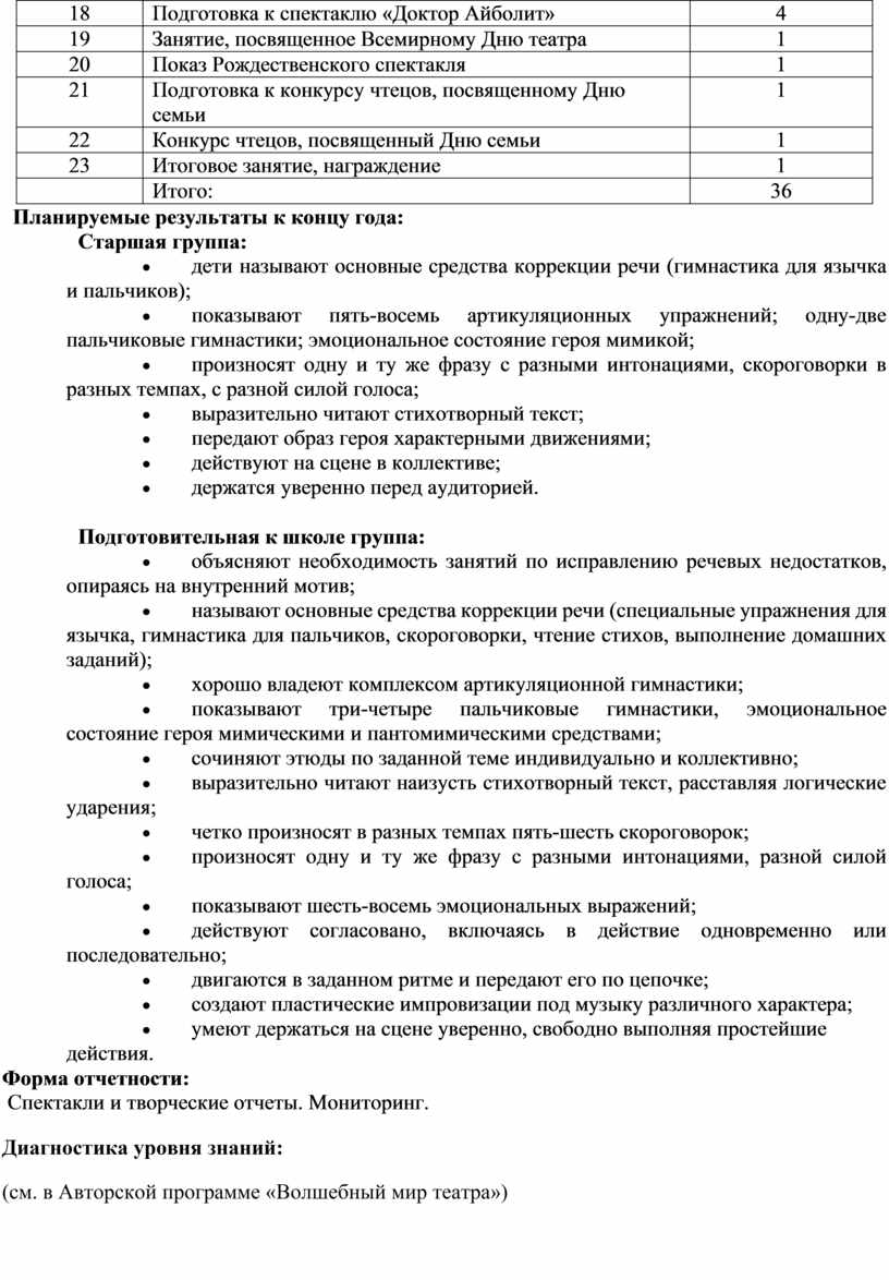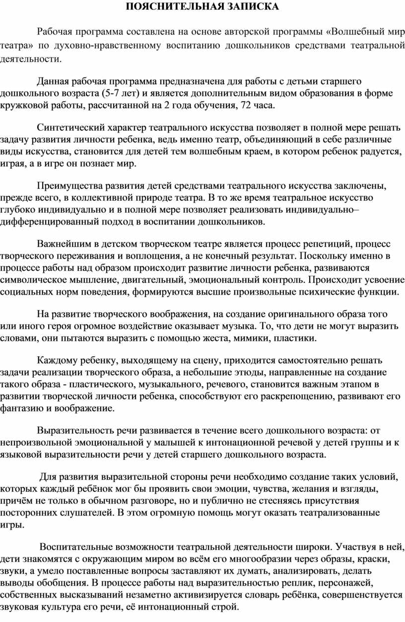 Рабочая программа составлена на основе авторской программы «Волшебный мир театра» по духовно-нравственному воспитанию дошкольников средствами театральной деятельности.
