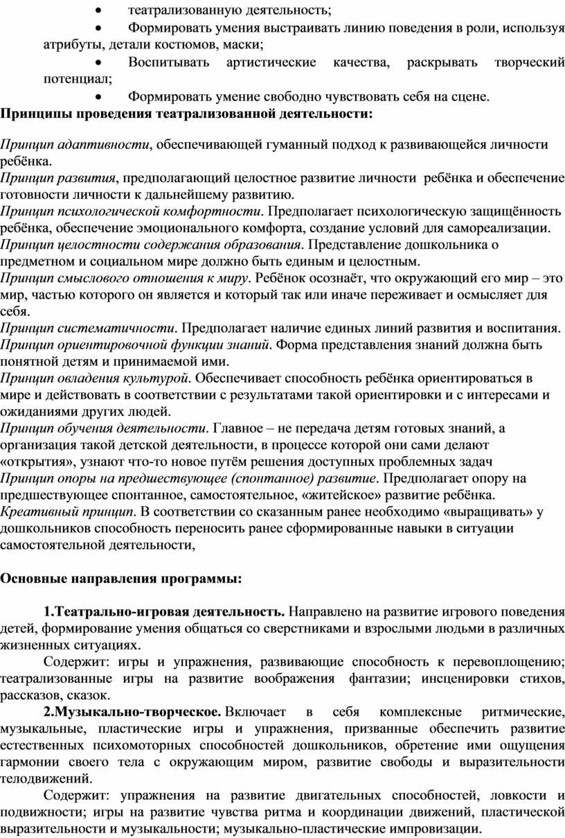 2.Музыкально-творческое. Включает в себя комплексные ритмические, музыкальные, пластические игры и упражнения, призванные обеспечить развитие естественных психомоторных способностей дошкольников, обретение ими ощущения гармонии своего тела с окружающим миром, развитие свободы и выразительности телодвижений.