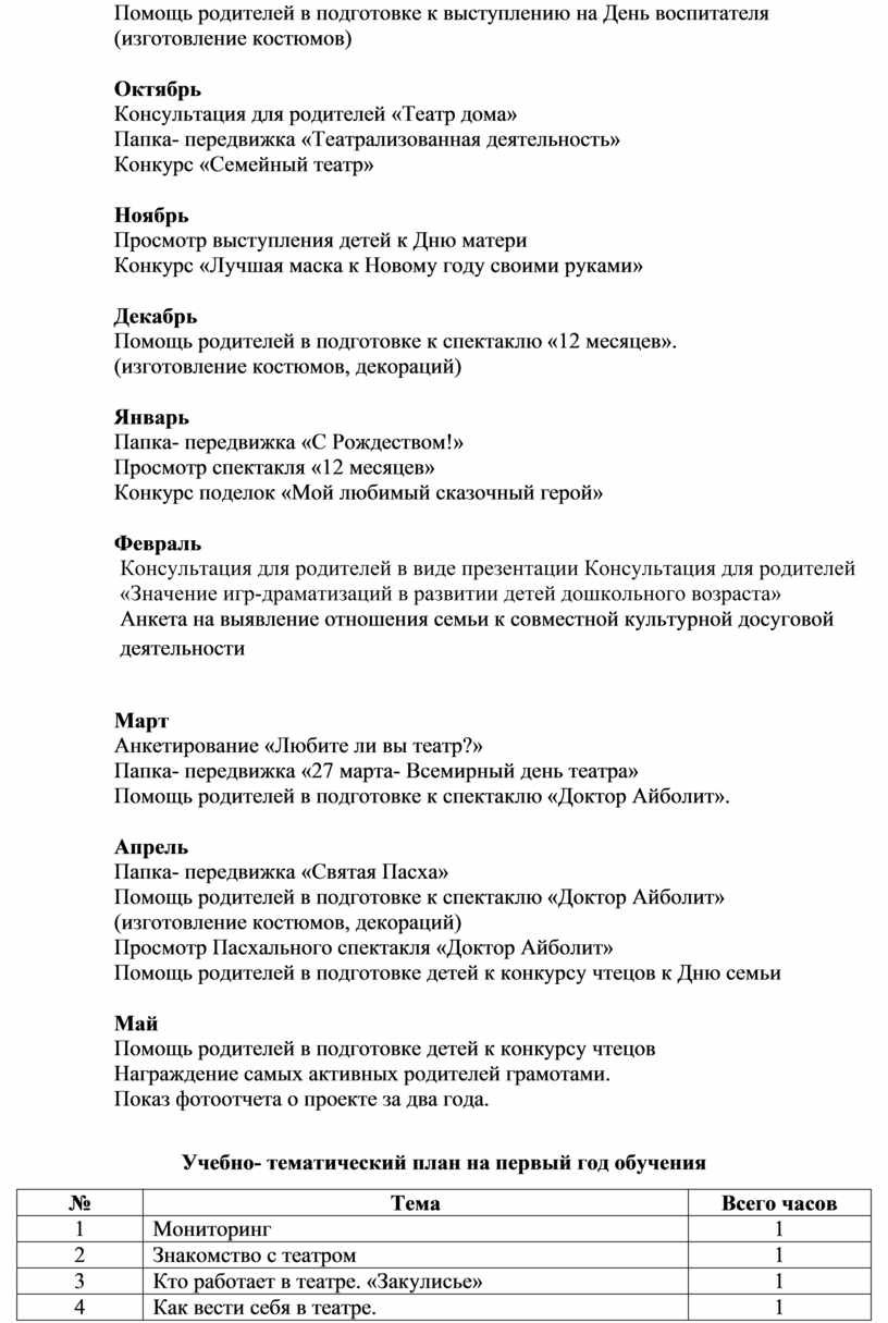 картин и всей пьесы целиком; премьера спектакля; обсуждение его с детьми). К