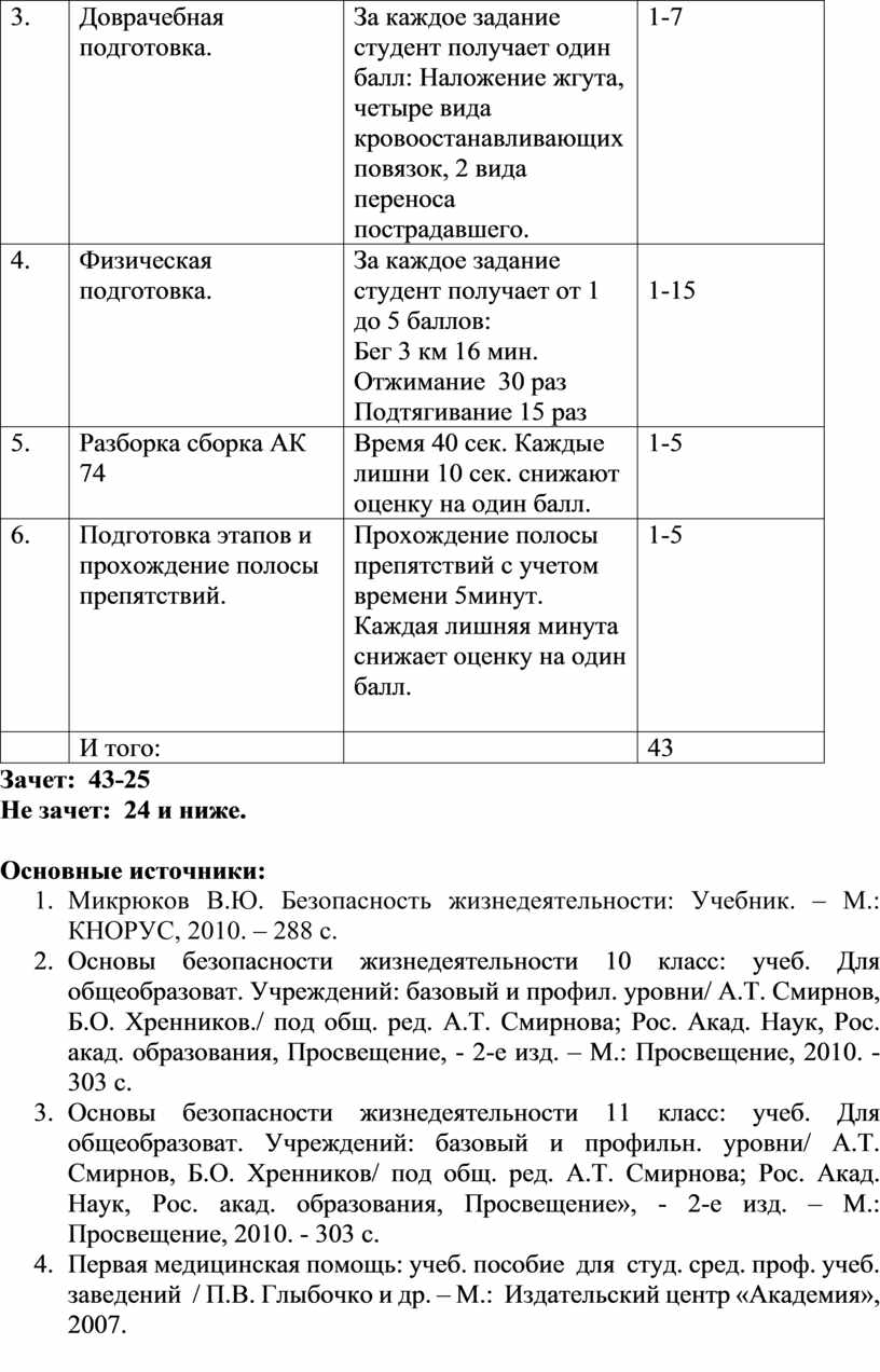 1. Микрюков В.Ю. Безопасность жизнедеятельности: Учебник. – М.: КНОРУС, 2010. – 288 с.