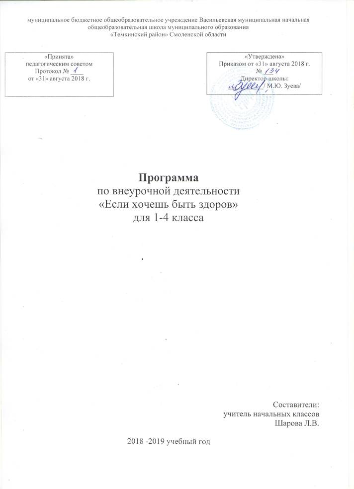 Программа внеурочной деятельности «Если хочешь быть здоров» адресована: детям, обучающимся в 1-4 классе МБОУ Васильевская МНОШ..