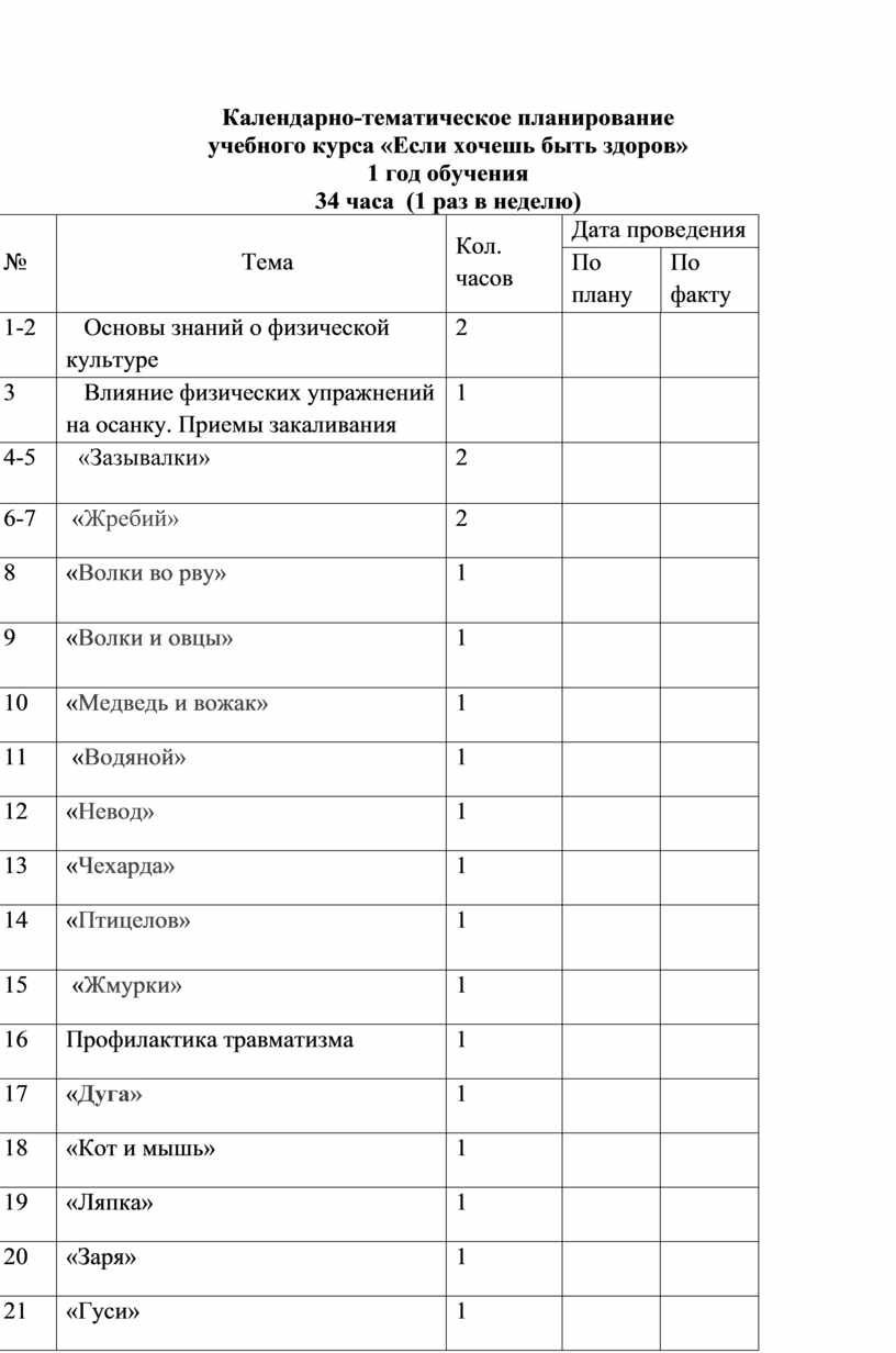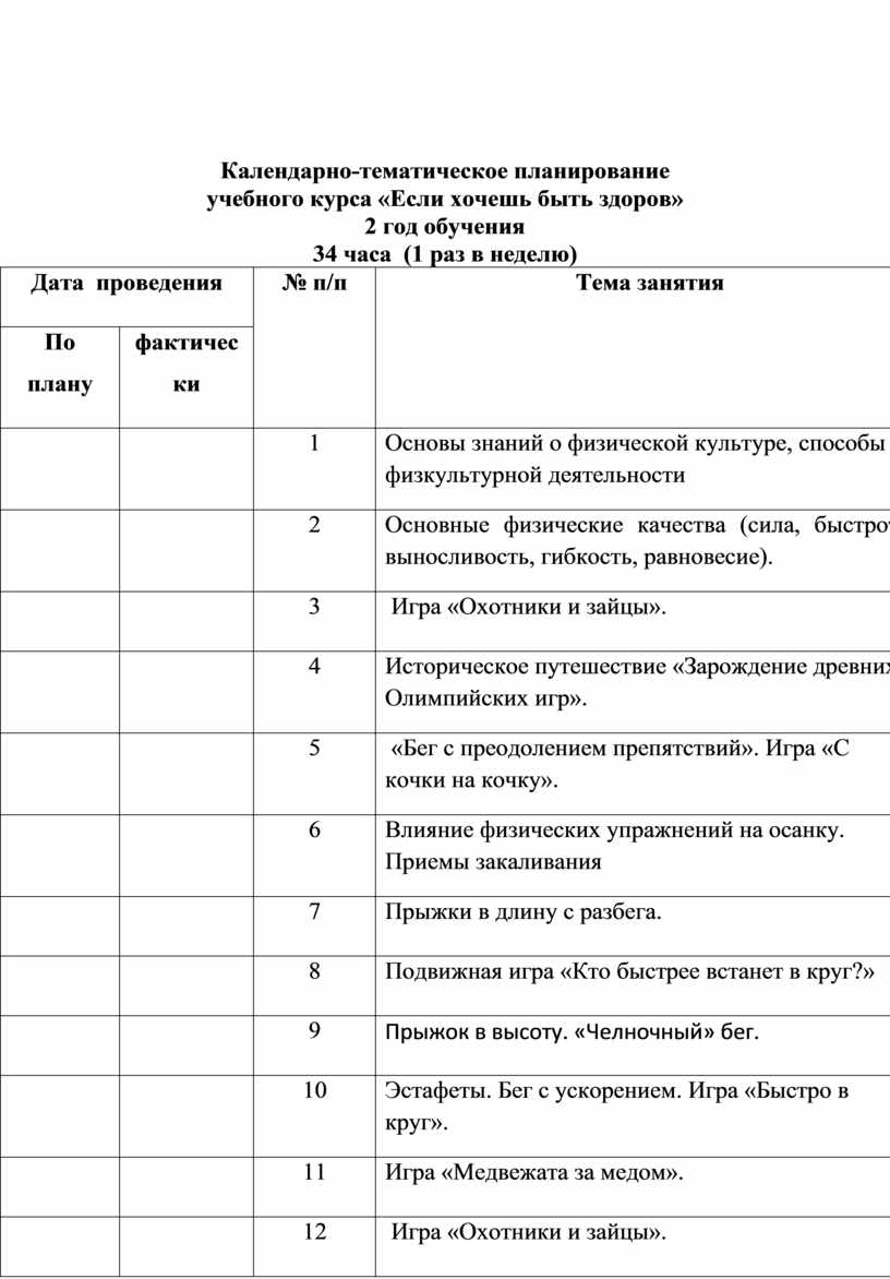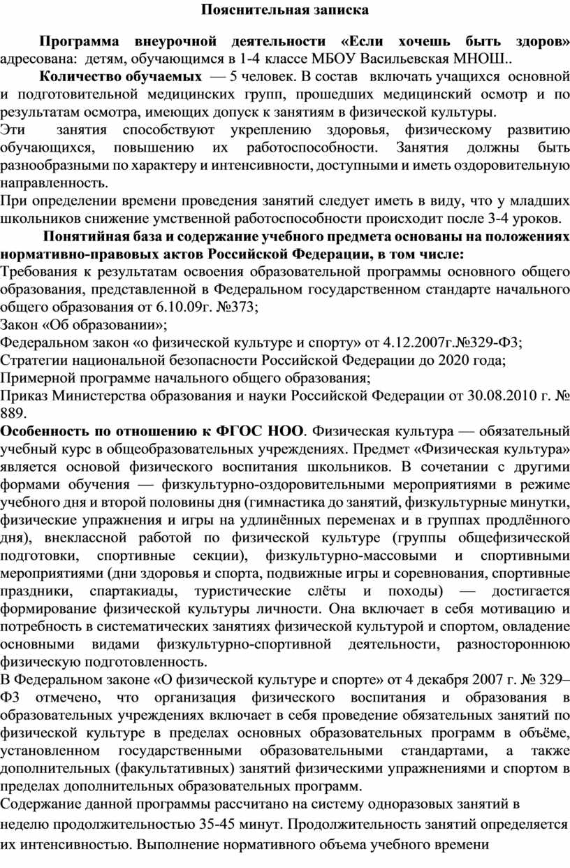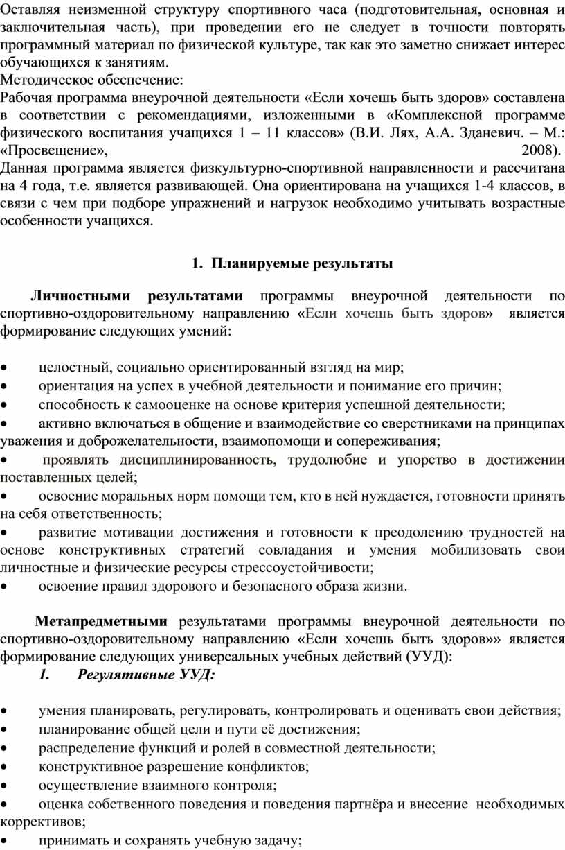 деятельности «Если хочешь быть здоров» составлена в соответствии с