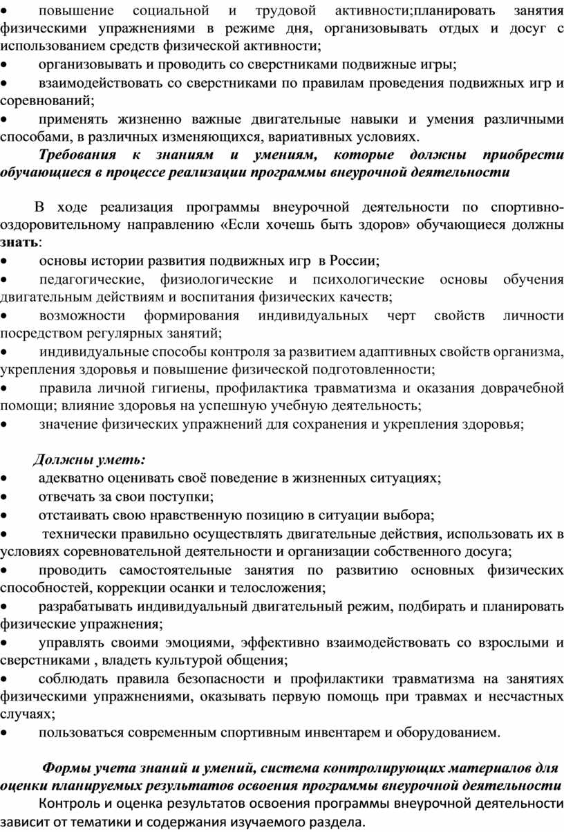 В ходе реализация программы внеурочной деятельности по спортивно-оздоровительному направлению «Если хочешь быть здоров» обучающиеся должны знать: