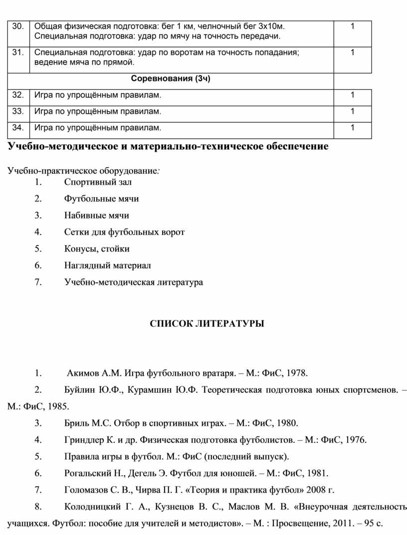 8. Колодницкий Г. А., Кузнецов В. С., Маслов М. В. «Внеурочная деятельность учащихся. Футбол: пособие для учителей и методистов». – М. : Просвещение, 2011. – 95 с.