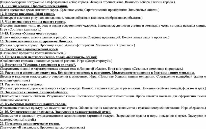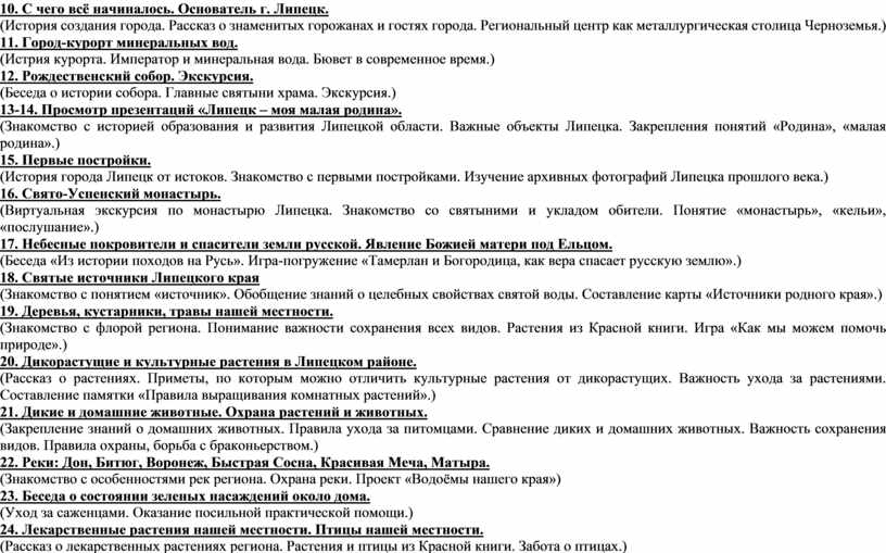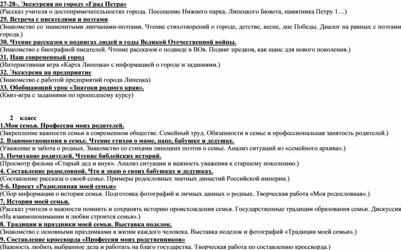 (Рассказ учителя о достопримечательностях города. Посещение Нижнего парка, Липецкого Бювета, памятника Петру 1…)