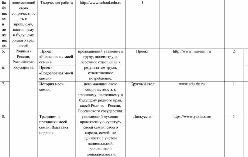 (Знакомство с понятиями: поколение, потомки, предки. События, которые отразились в истории семьи.)