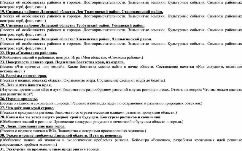 (История создания Липецкой области. символы и достопримечательности городов и сел. Экономическое значение региона.)