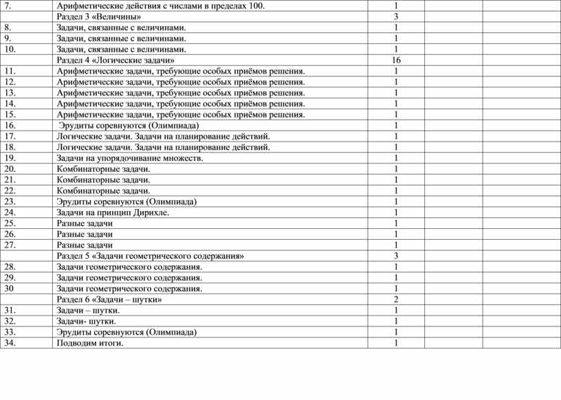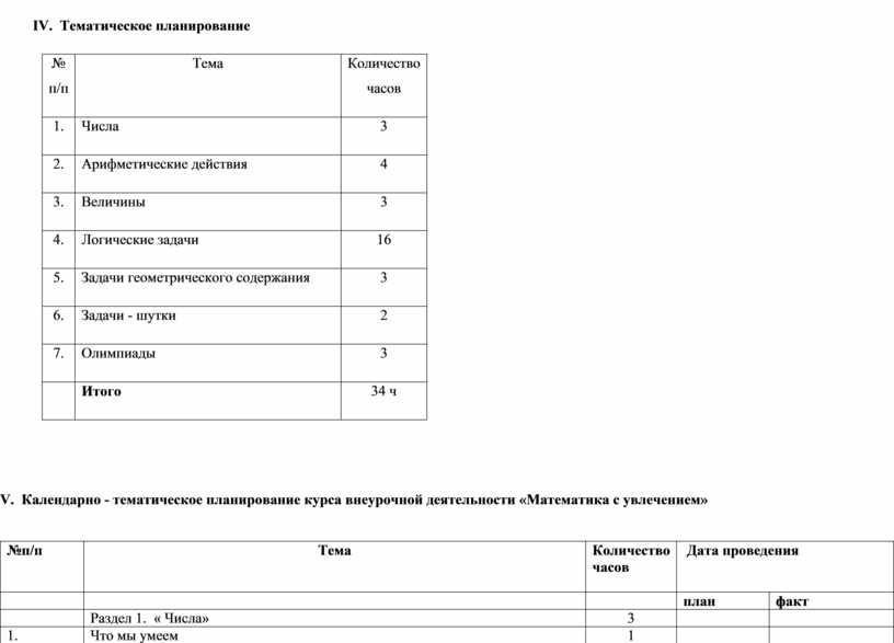 V. Календарно - тематическое планирование курса внеурочной деятельности «Математика с увлечением»