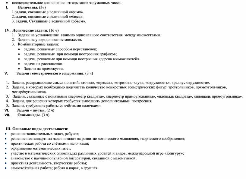 · решение нестандартных задач и задач на развитие логического мышления, творческого воображения;