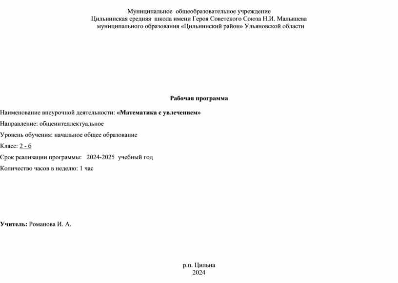 Цильнинская средняя школа имени Героя Советского Союза Н.И. Малышева