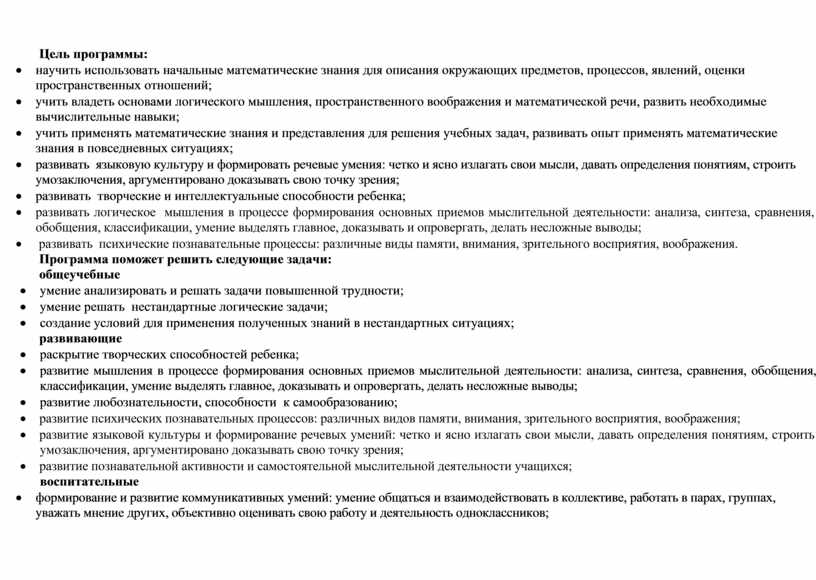 · учить владеть основами логического мышления, пространственного воображения и математической речи, развить необходимые вычислительные навыки;