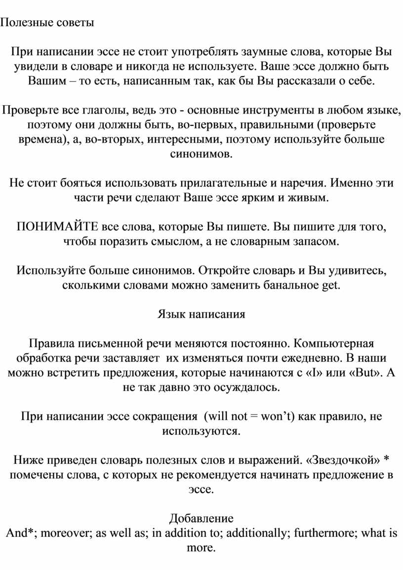 Написание эссе с аргументами «за»и «против». |