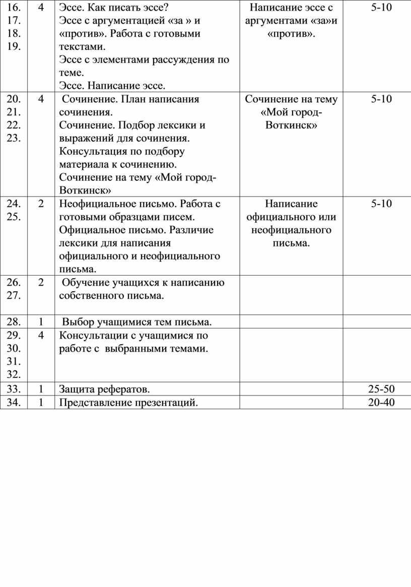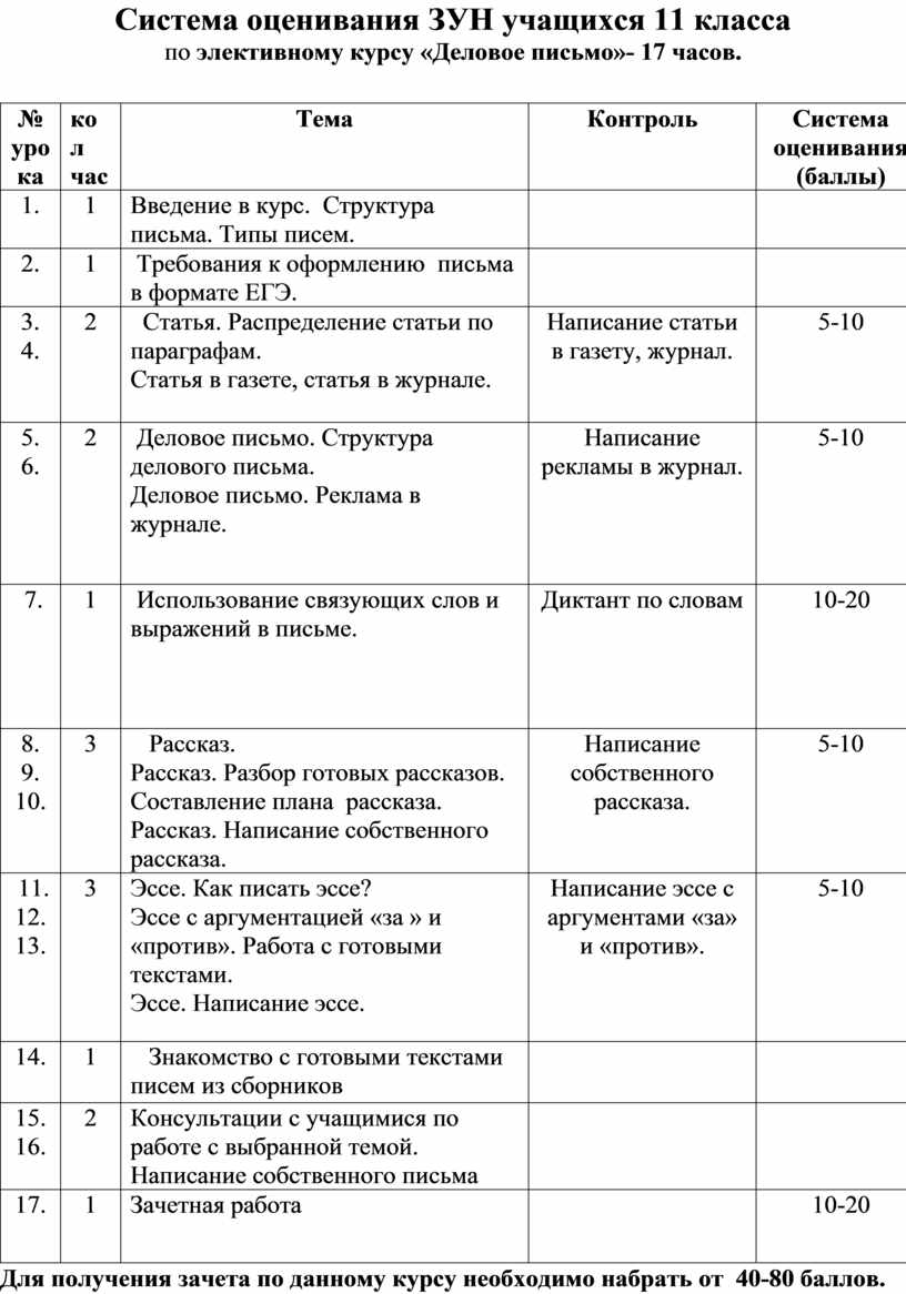 по элективному курсу «Деловое письмо»-34 часа.