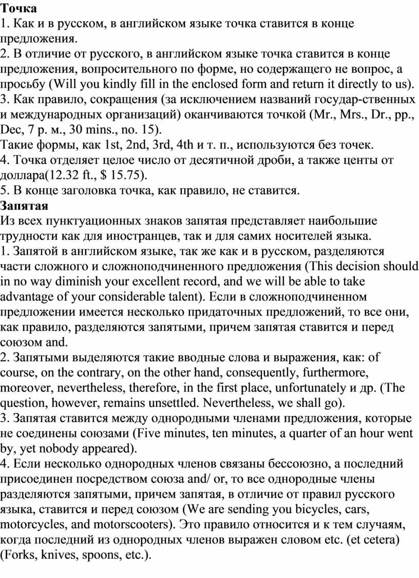 ОСНОВНЫЕ ПРАВИЛА ОРФОГРАФИИ И ПУНКТУАЦИИ АНГЛИЙСКОГО ЯЗЫКА