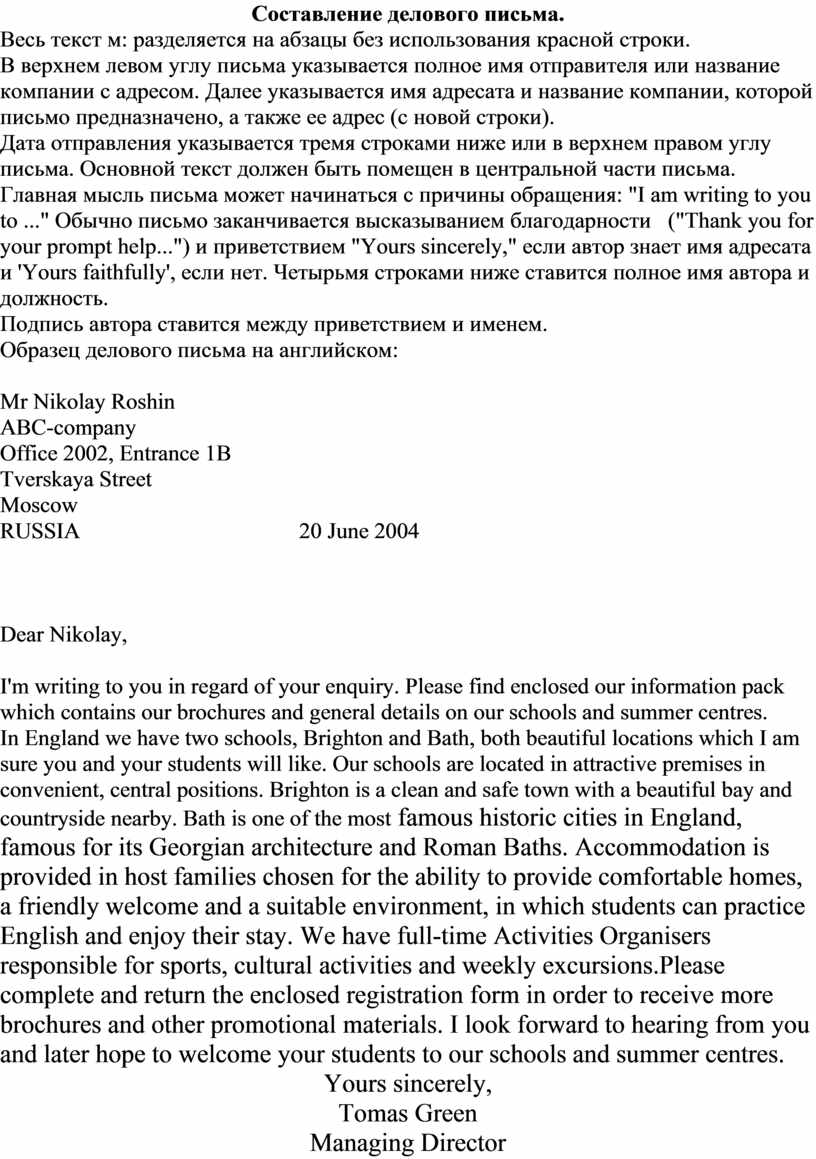 -дать правильное оформление письма;