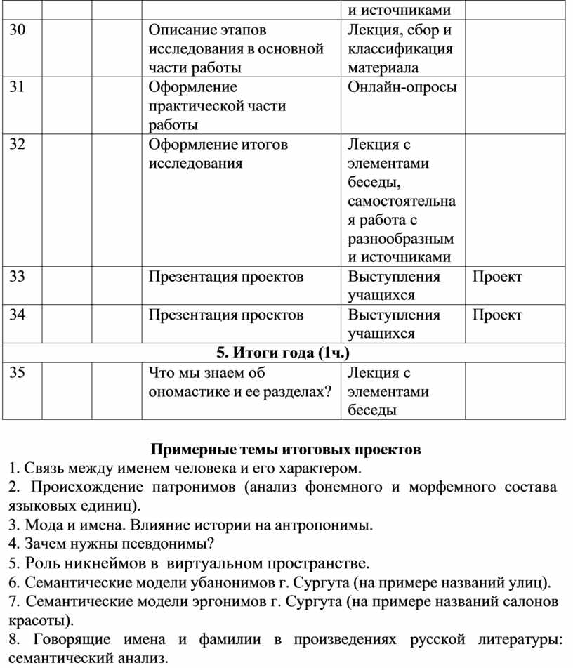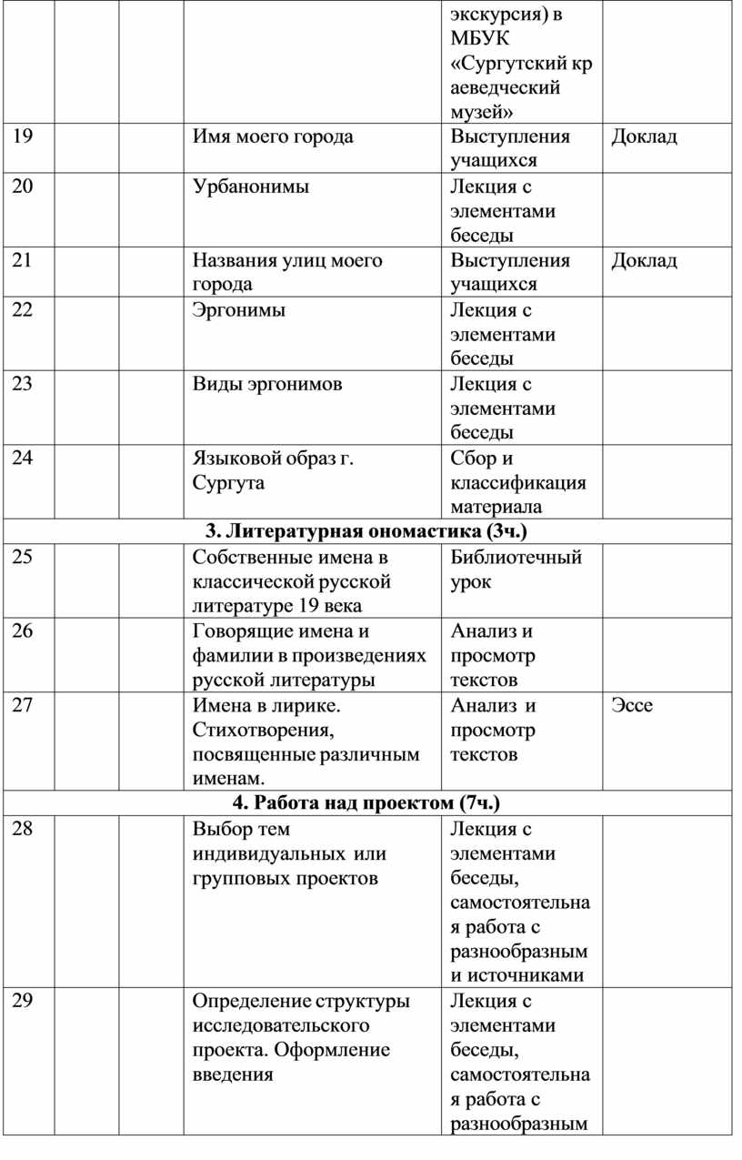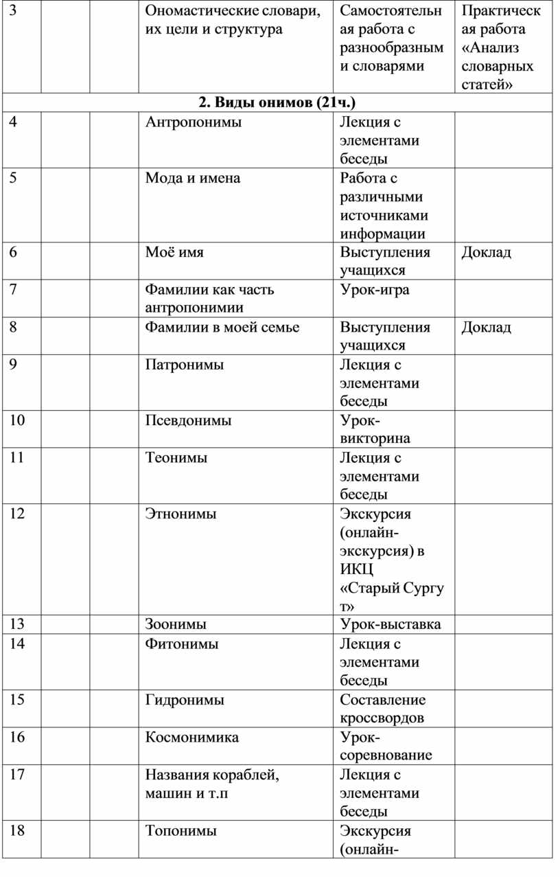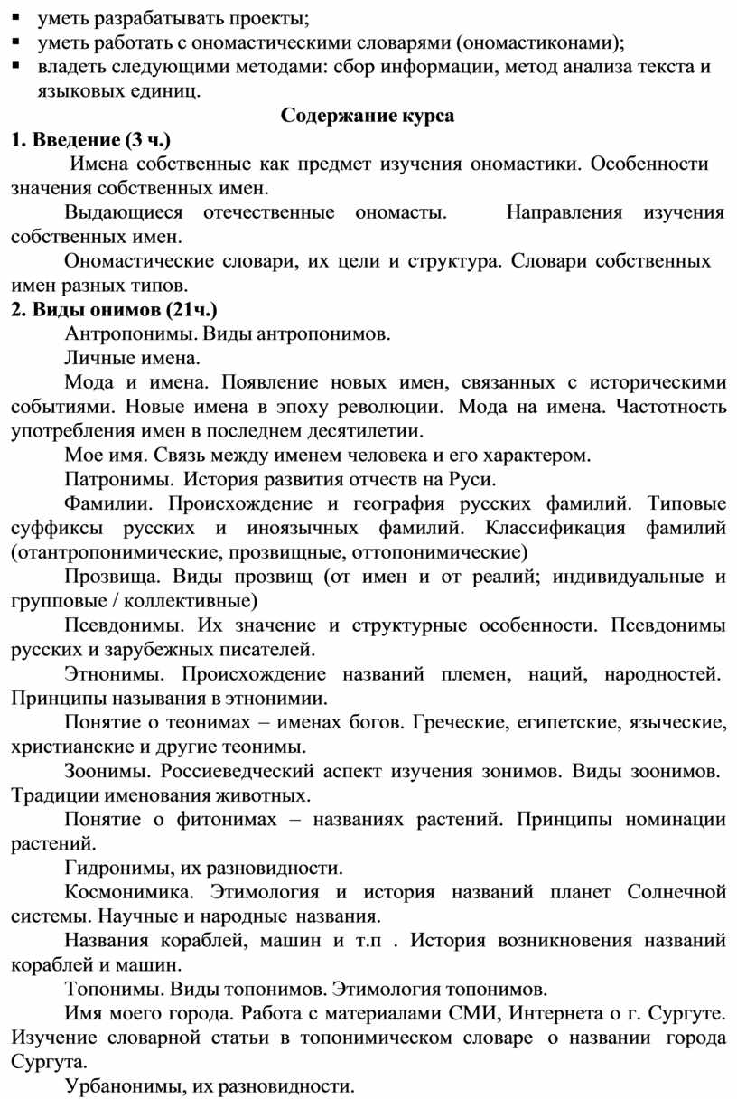 § овладения приемами научного описания ономастической лексики (классификация, работа со словарями, научный анализ, систематизация, обобщение и т. д.)