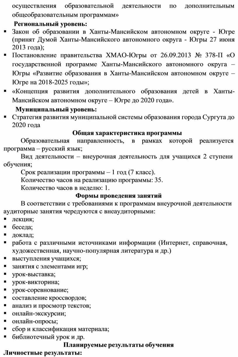 § Постановление правительства ХМАО-Югры от 26.09.2013 № 378-П «О государственной программе Ханты-Мансийского автономного округа – Югры «Развитие образования в Ханты-Мансийском автономном округе – Югре на 2018-2025 годы»;