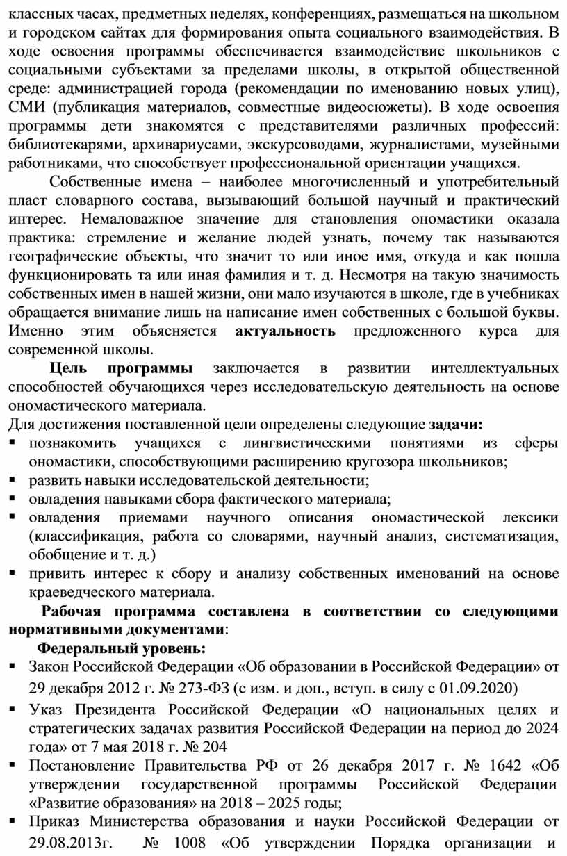 Цель программы заключается в развитии интеллектуальных способностей обучающихся через исследовательскую деятельность на основе ономастического материала.