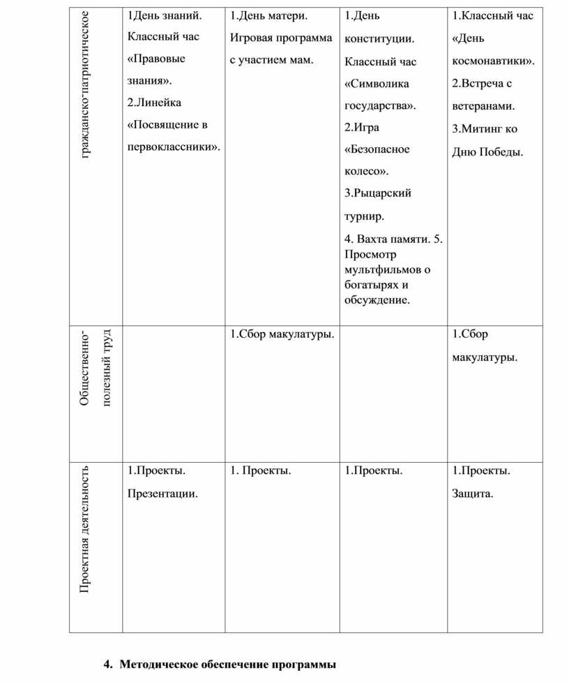 1.Конкурс рисунков ко Дню Победы. 2.Экскурсии. 3.Посещение театра. 4. Посещение кружков. |
